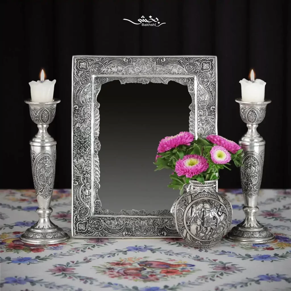 - ست آینه شمعدان نقره