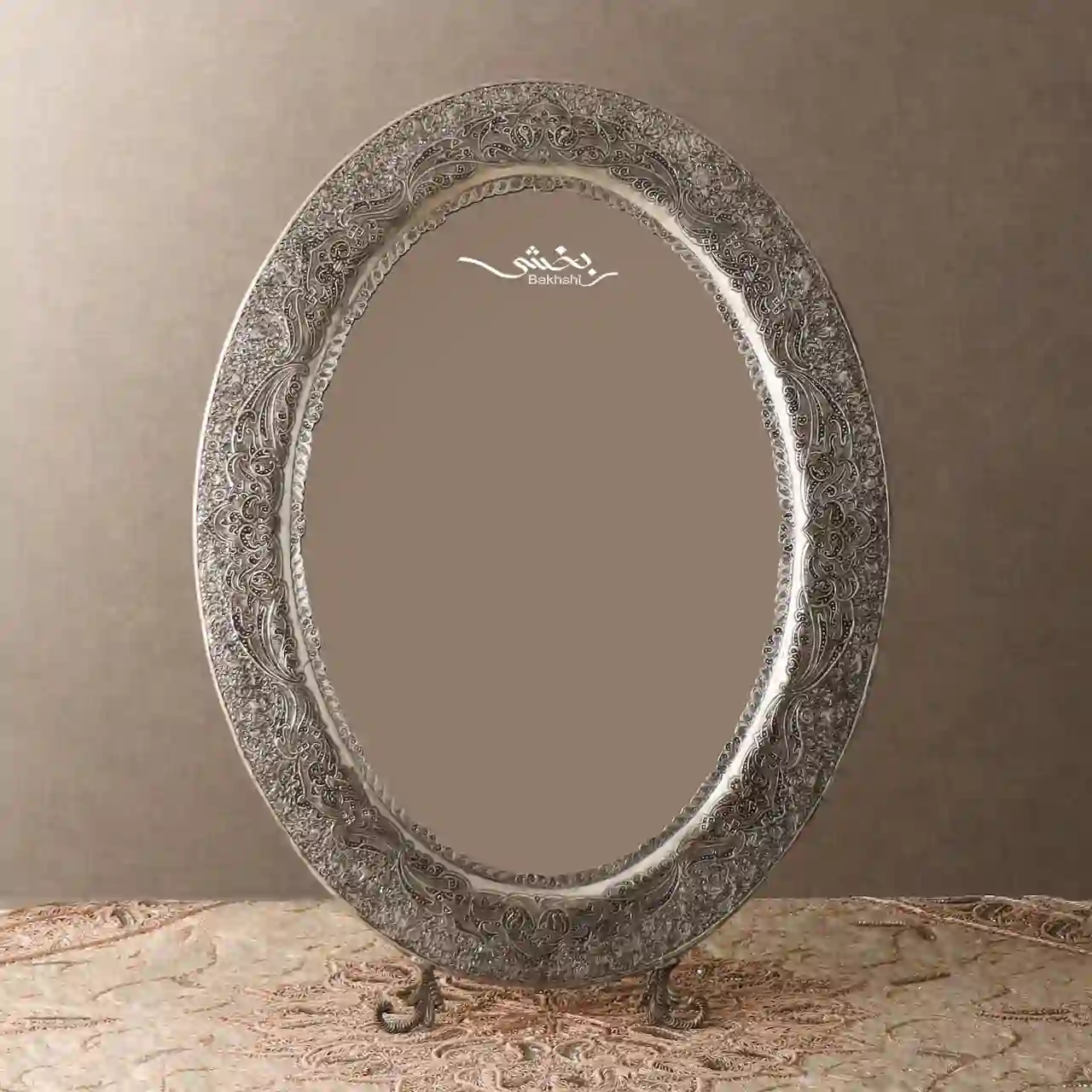 این ست شامل آینه نقره بیضی گل و مرغ مشبک اعلا با وزن ۱۱۱۵.۲ گرم و شمعدان سهشاخه گل و مرغ ریزقلم با وزن ۲۳۵۹.۳ گرم است. آینه دارای ابعاد ۶۰×۴۵ و ارتفاع ۶۳ سانتیمتر (با پایه) و شمعدانها دارای ارتفاع ۳۹ سانتیمتر هستند. مناسب برای دکوراسیون، سفره عقد و چیدمانهای تشریفاتی، و هماکنون در فروشگاه و سایت نقره بخشی موجود است.مشخصات آینه نقره بیضی گل و مرغ مشبک: