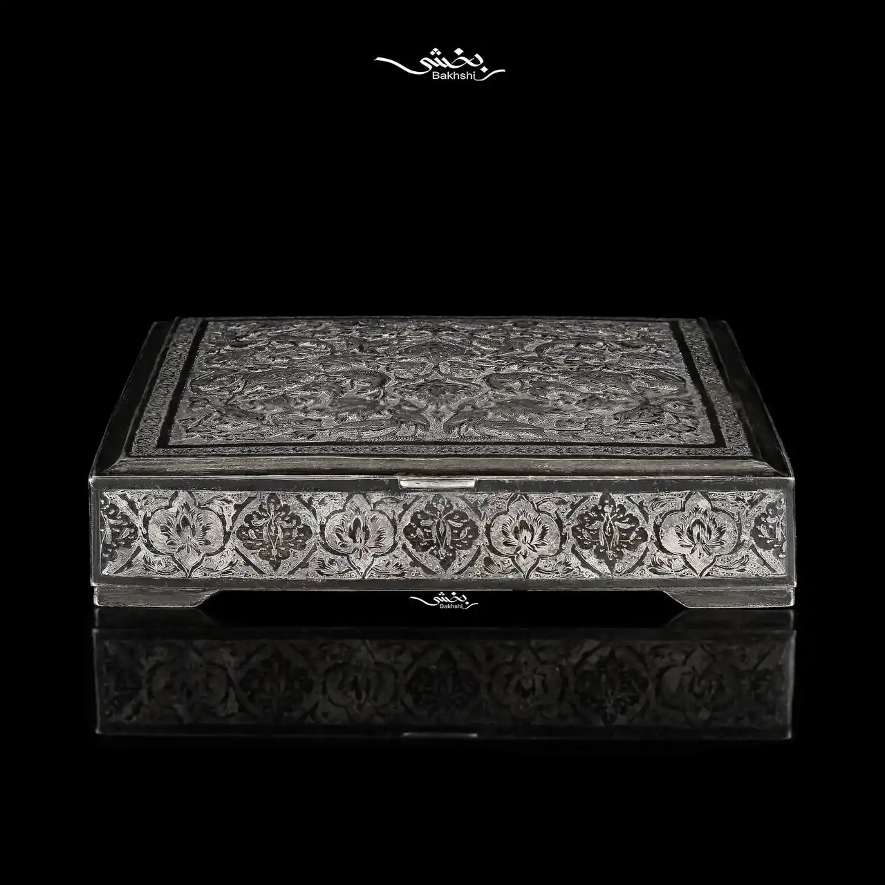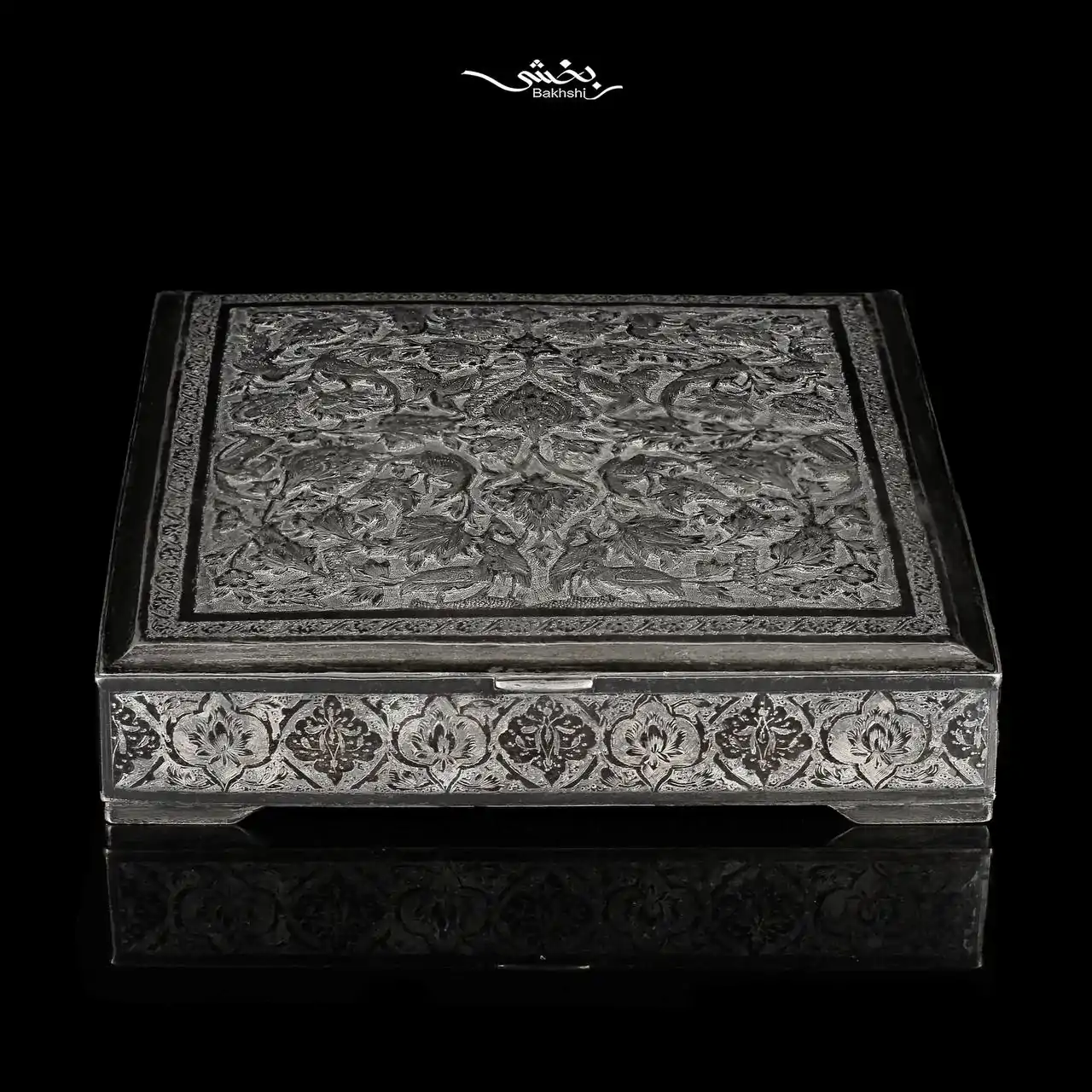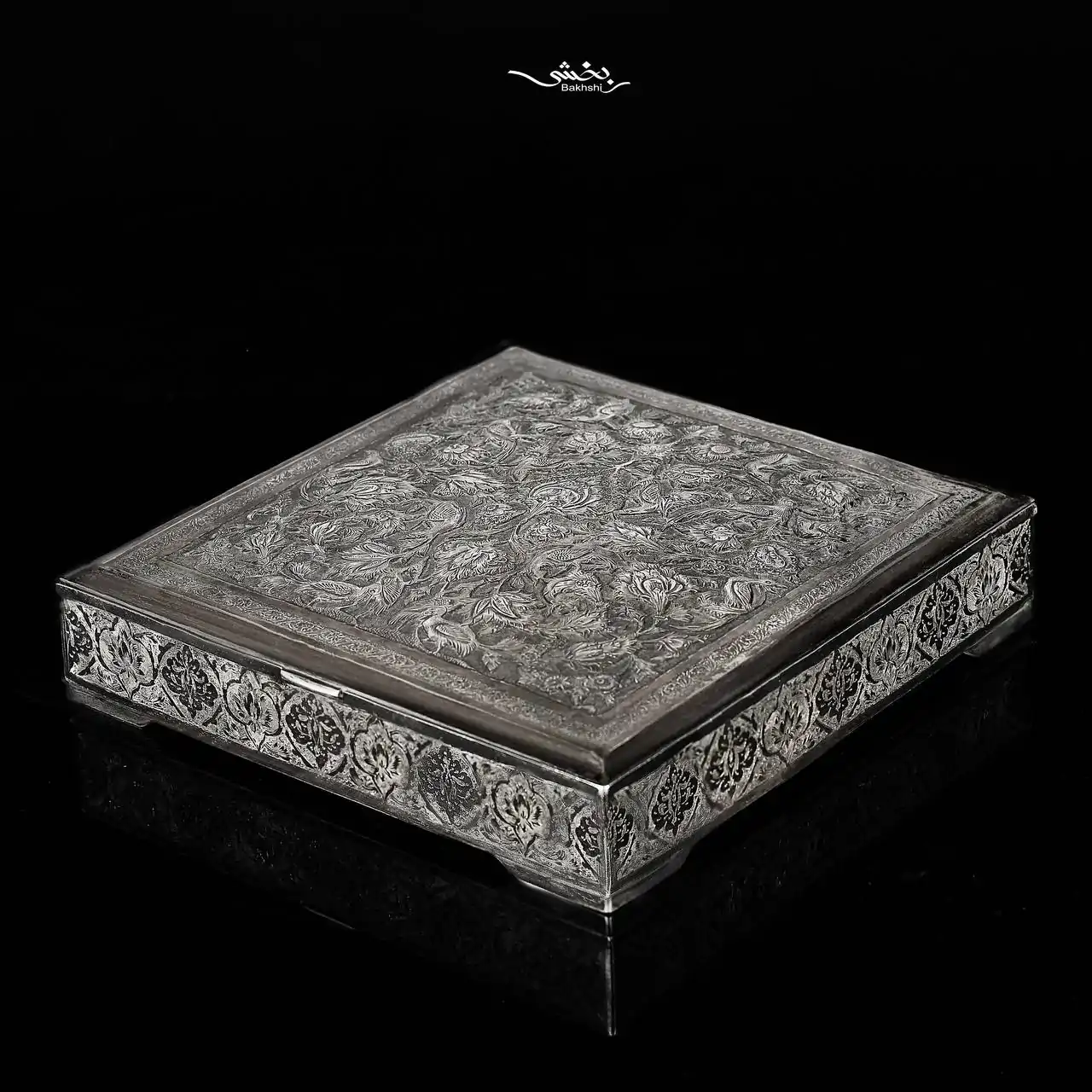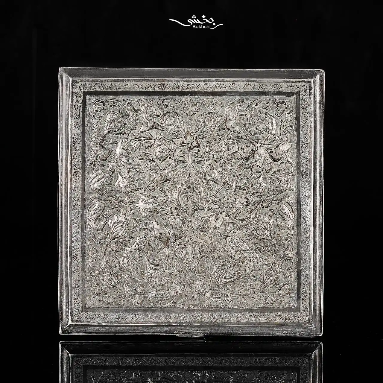 جعبه نقره مربع گل و مرغ اعلا