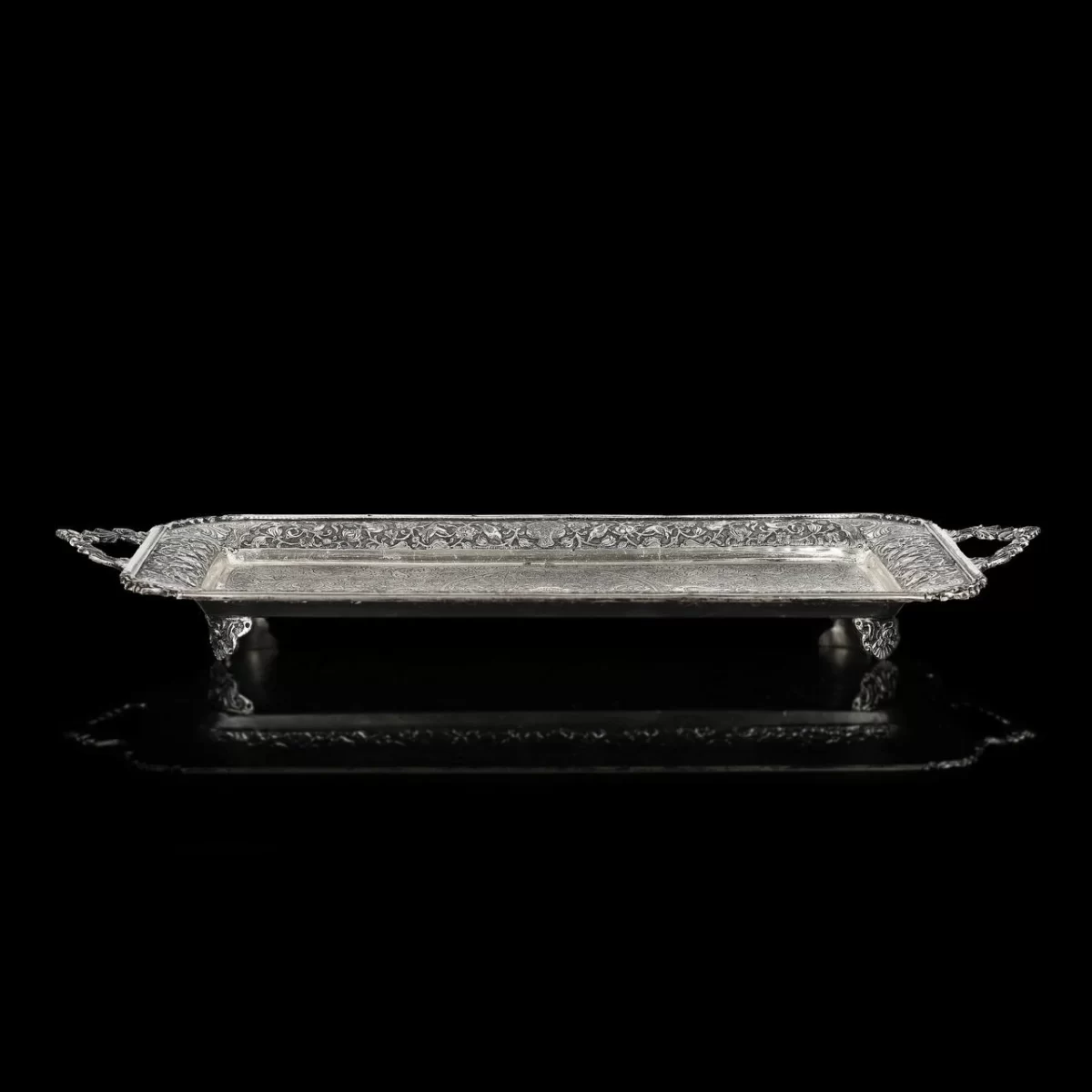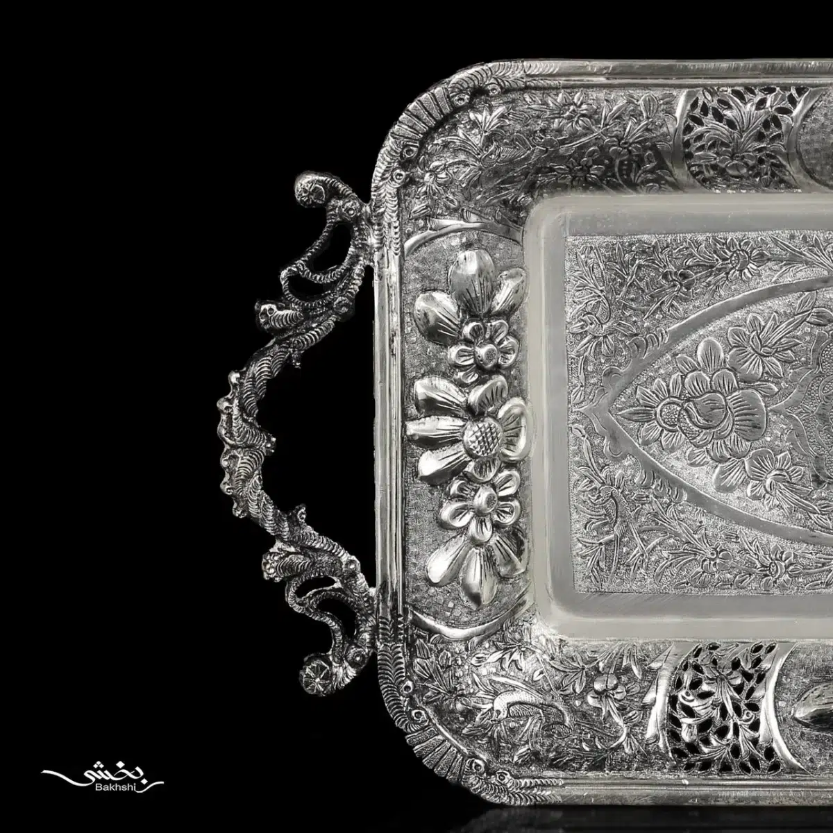 رولت خوری نقره دسته دار گل برجسته درجه یک