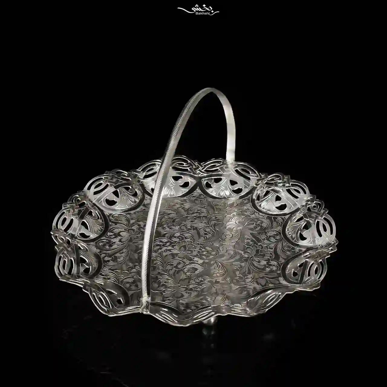 - شرح کالا: سبد نقره دستهدار گرد قلم تبریز