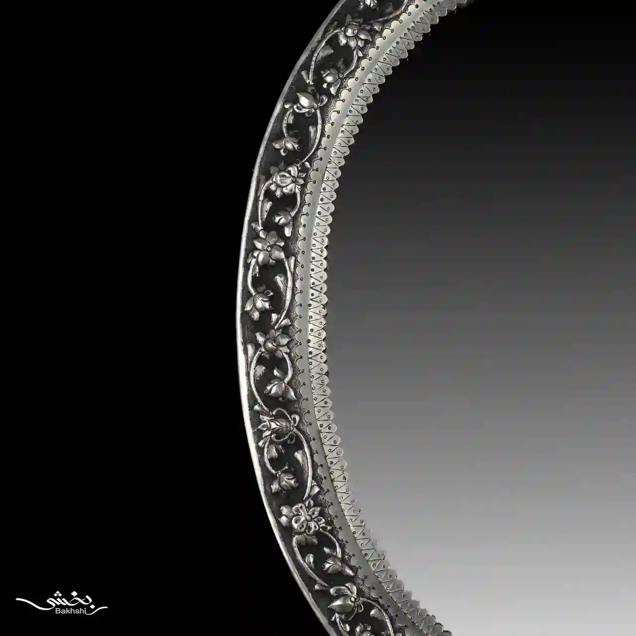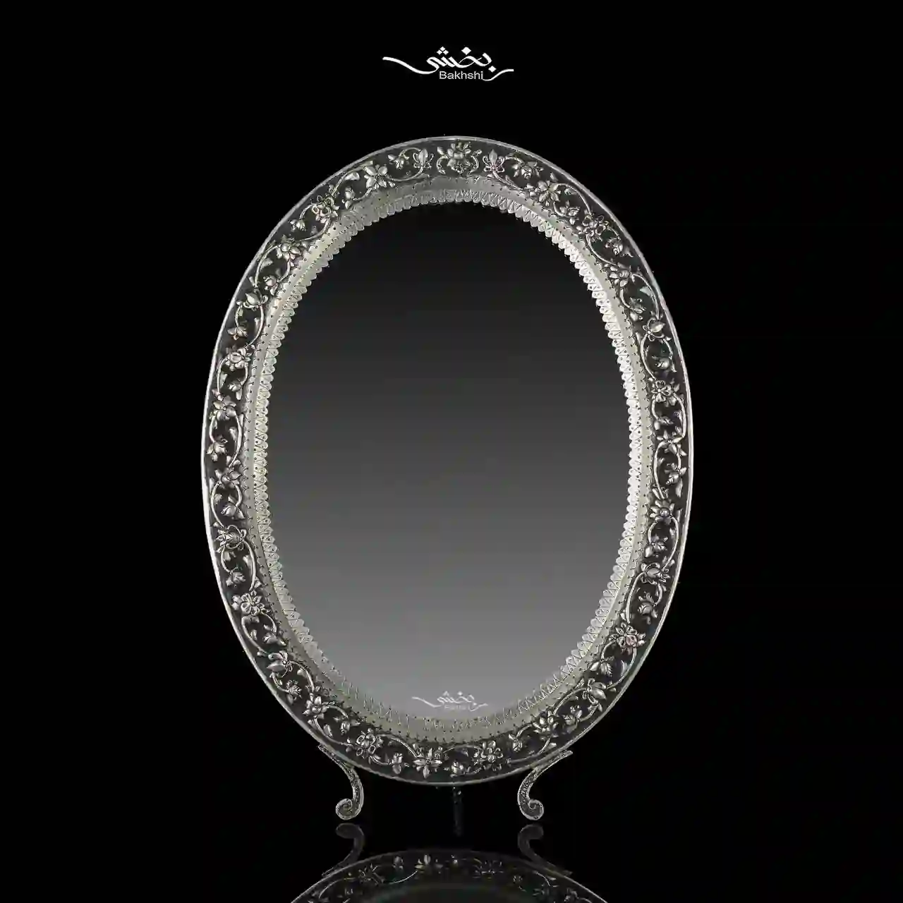 آینه بیضی نقره گل برجسته T004325