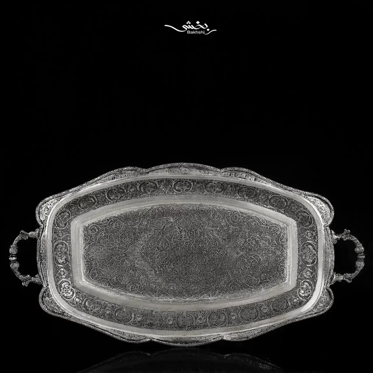 اولین نفری باشید که دیدگاهی را ارسال می کنید برای “سینی نقره بیضی دسته دار قلم ترنج”