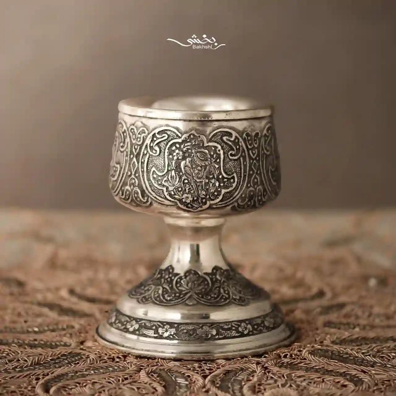 شمعدان نقره حباب خور کوتاه گل و مرغ اعلا