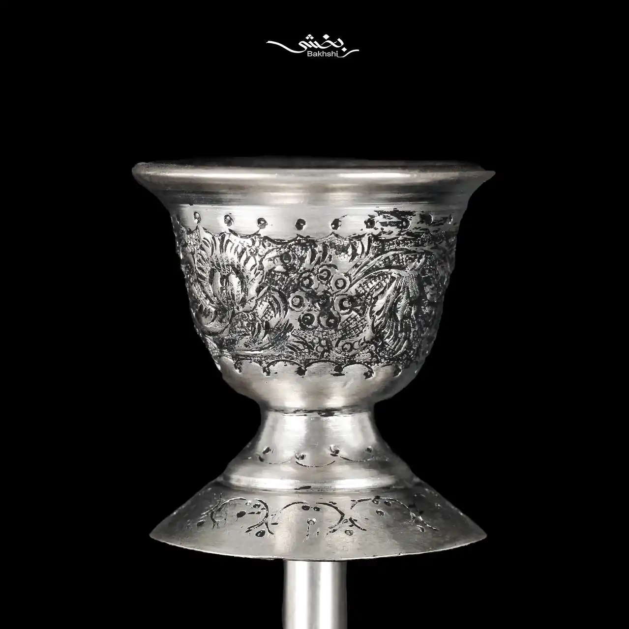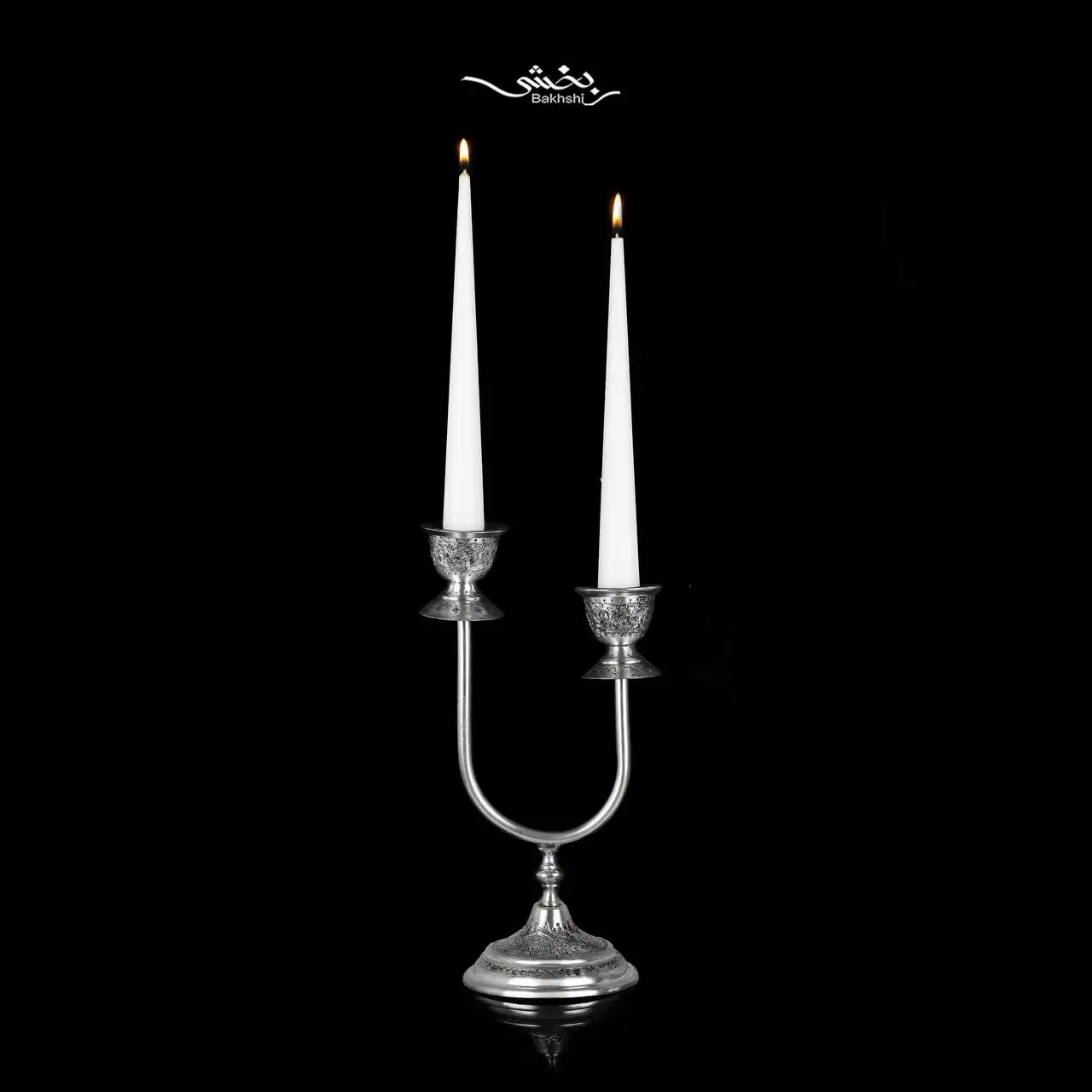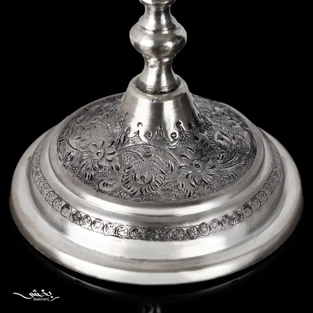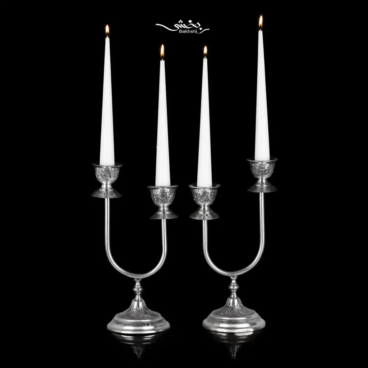شمعدان نقره دو شاخه قلم گل و مرغ