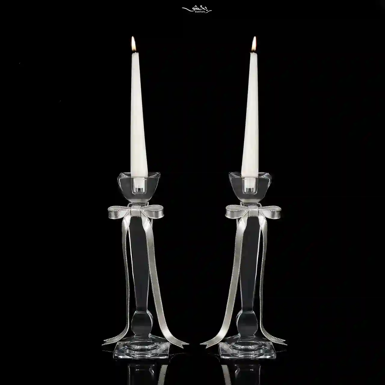 شمعدان پاپیون کریستال نقره