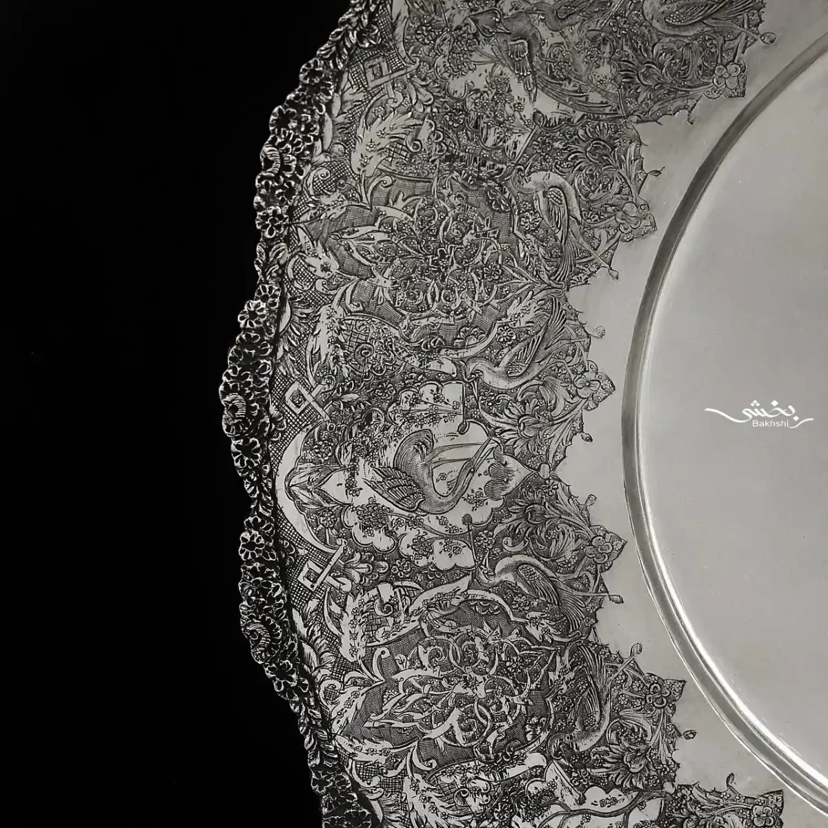 شیرینی خوری نقره تخت ریزقلم ترنج