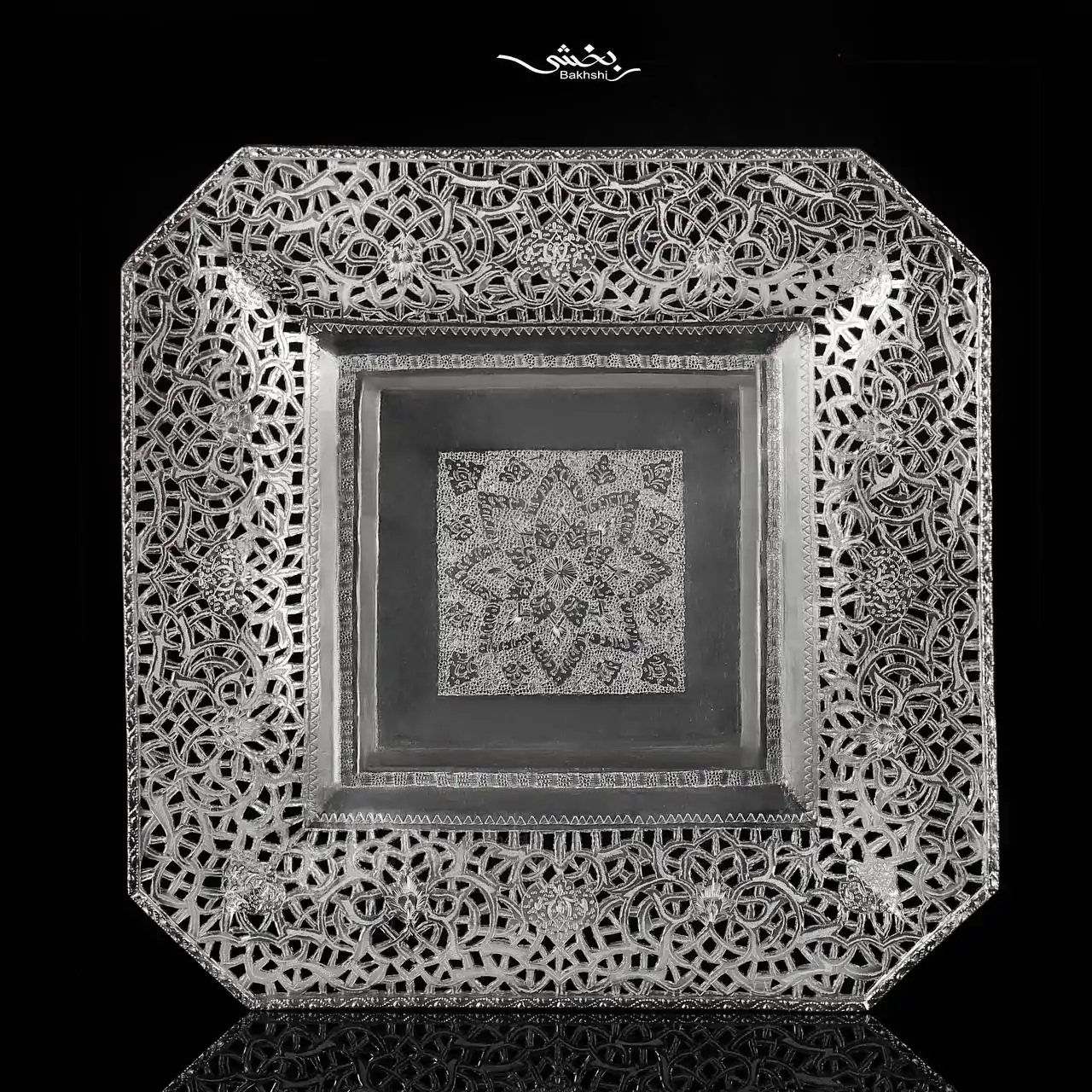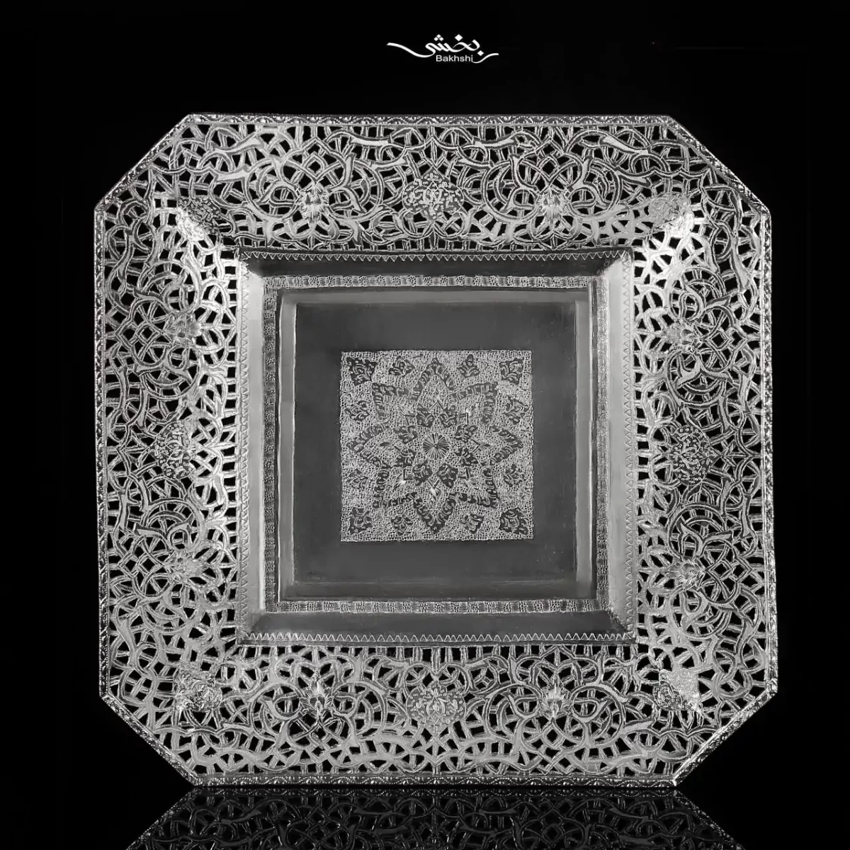 شیرینی خوری نقره مربع اره کاری
