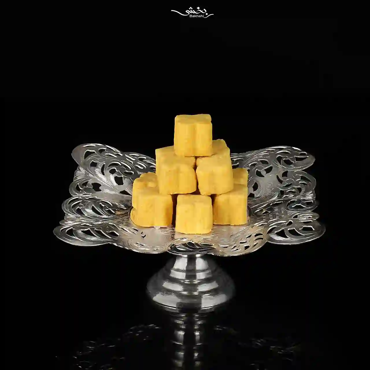 شیرینی خوری نقره مربع پایه دار قلم تبریز