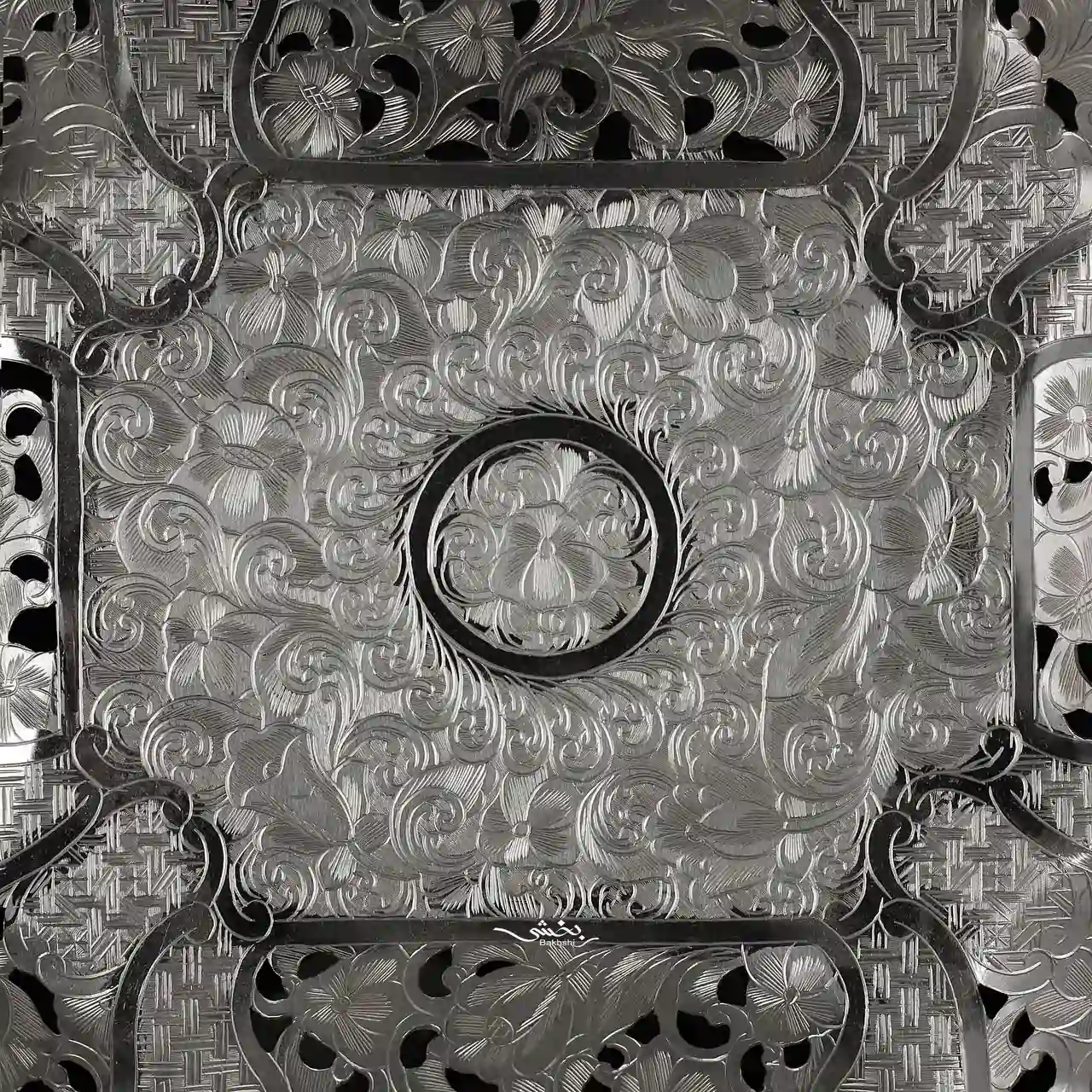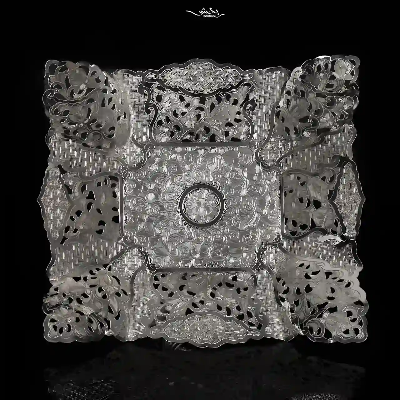 شیرینی خوری نقره پایه دار مربع قلم تبریز