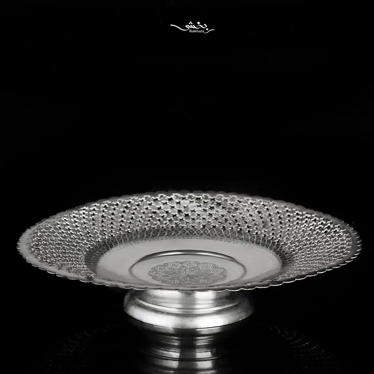شیرینی خوری نقره پایه کوتاه قلم نخودی