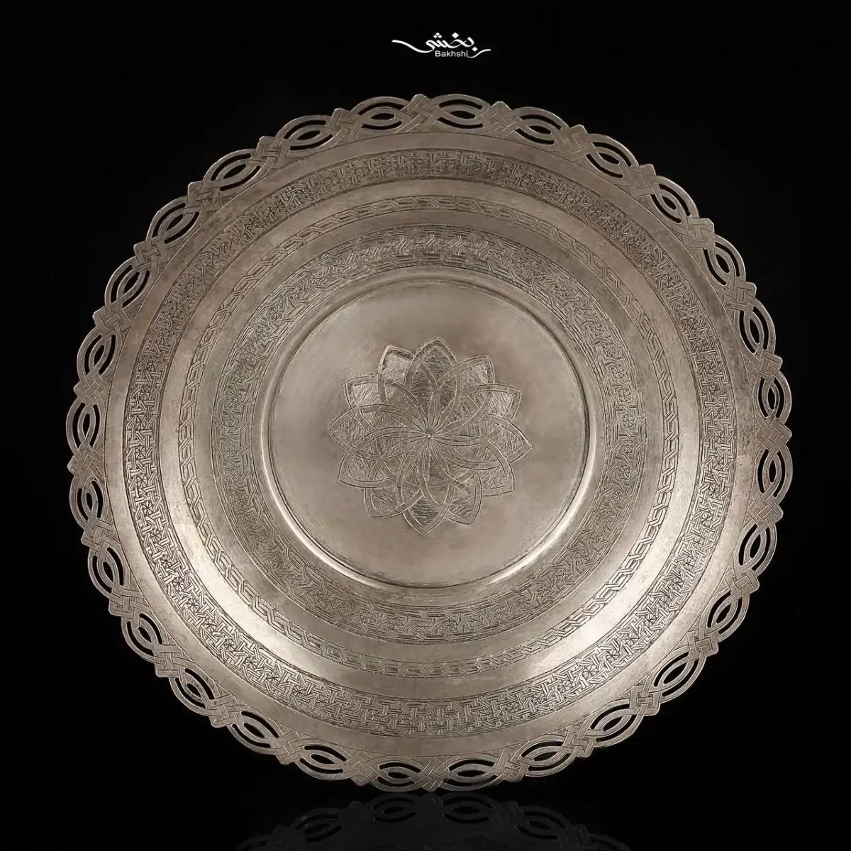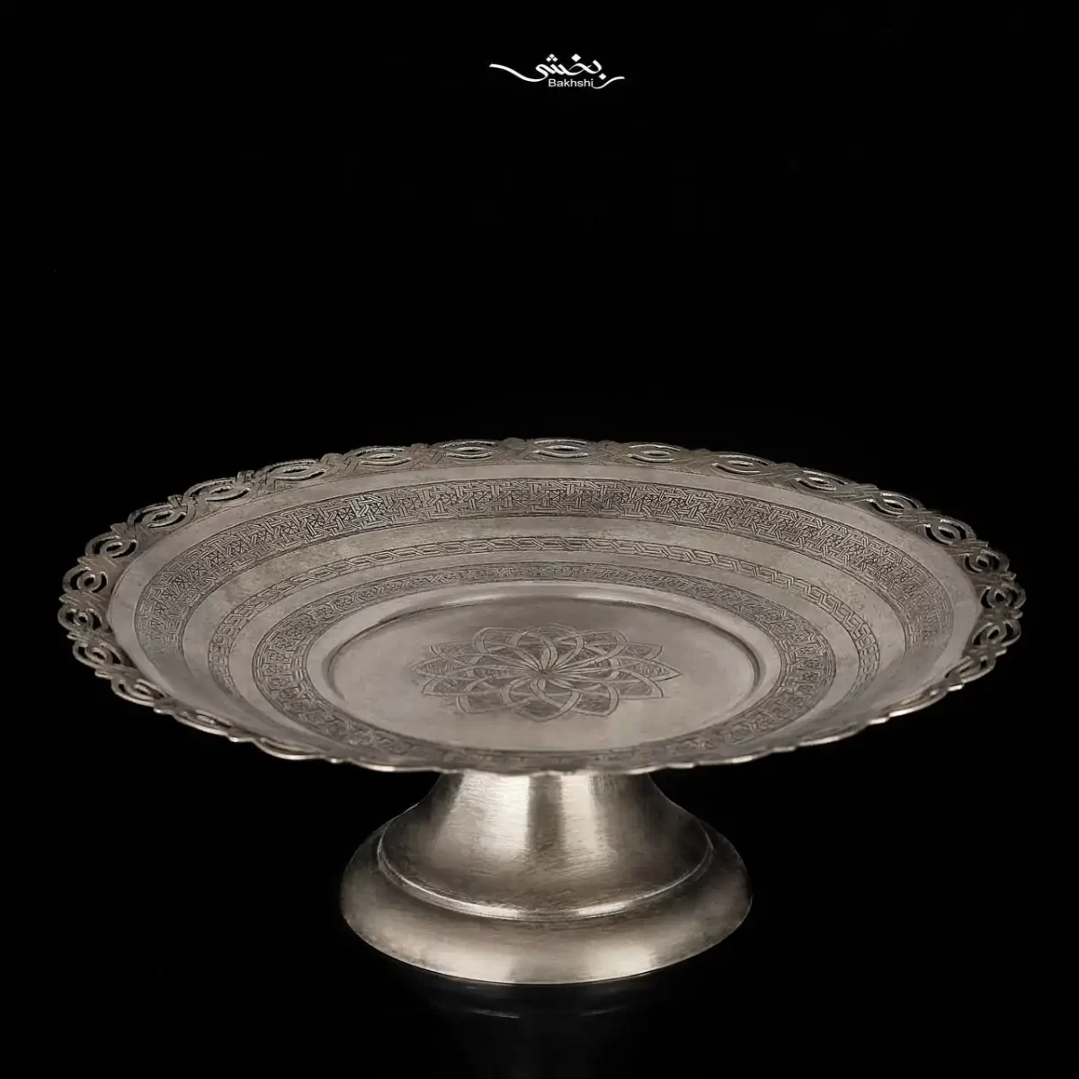 شیرینی خوری نقره گرد پایه دار قدیمی تبریز