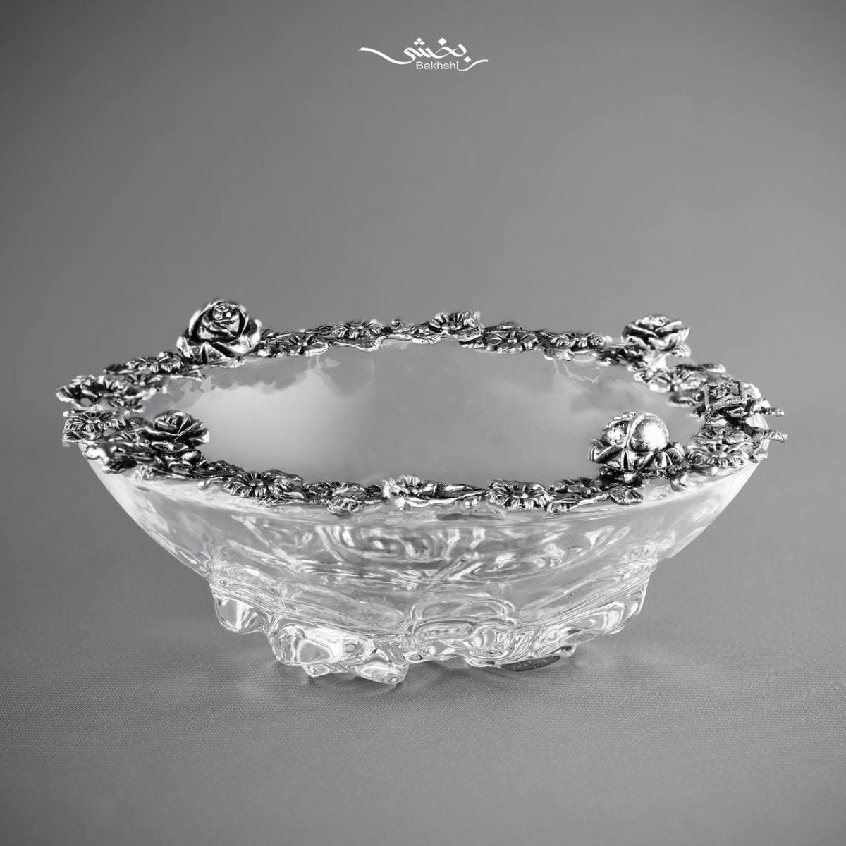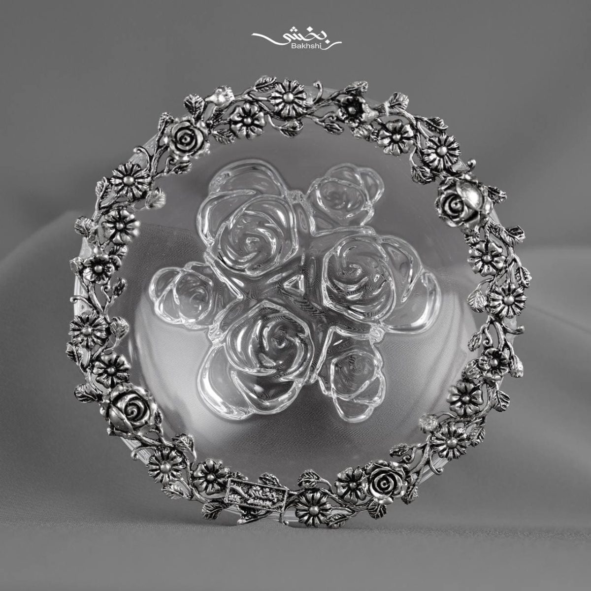 کاسه بلور نقره پایه گل رز