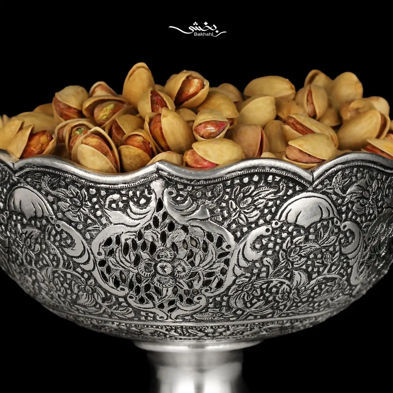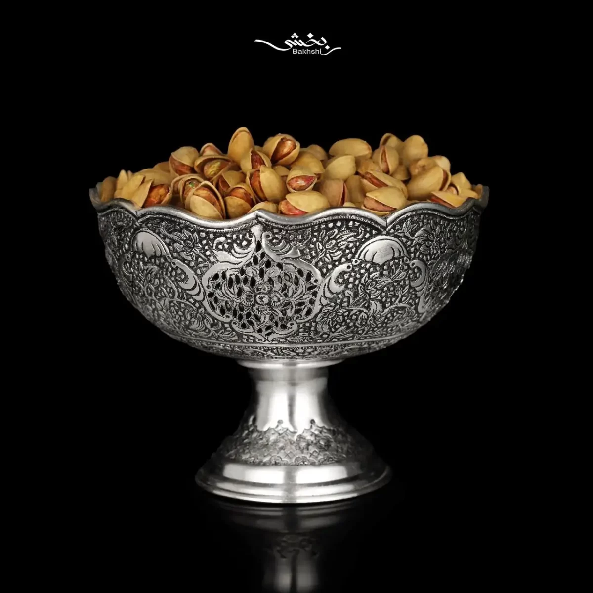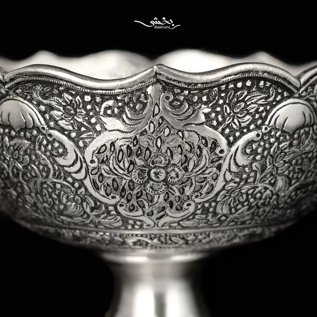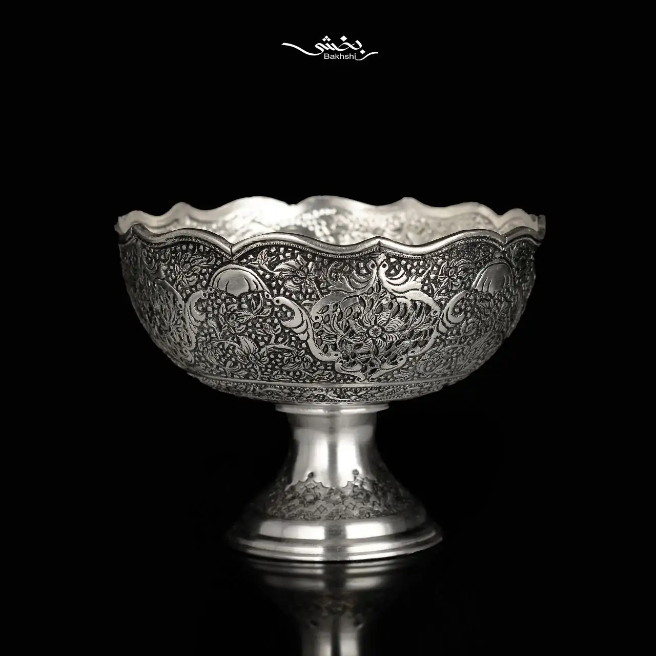 کاسه نقره پایه گلدانی گل و مرغ درجه یک