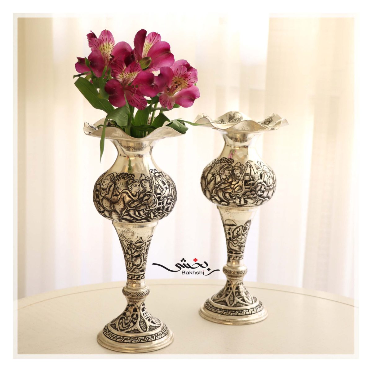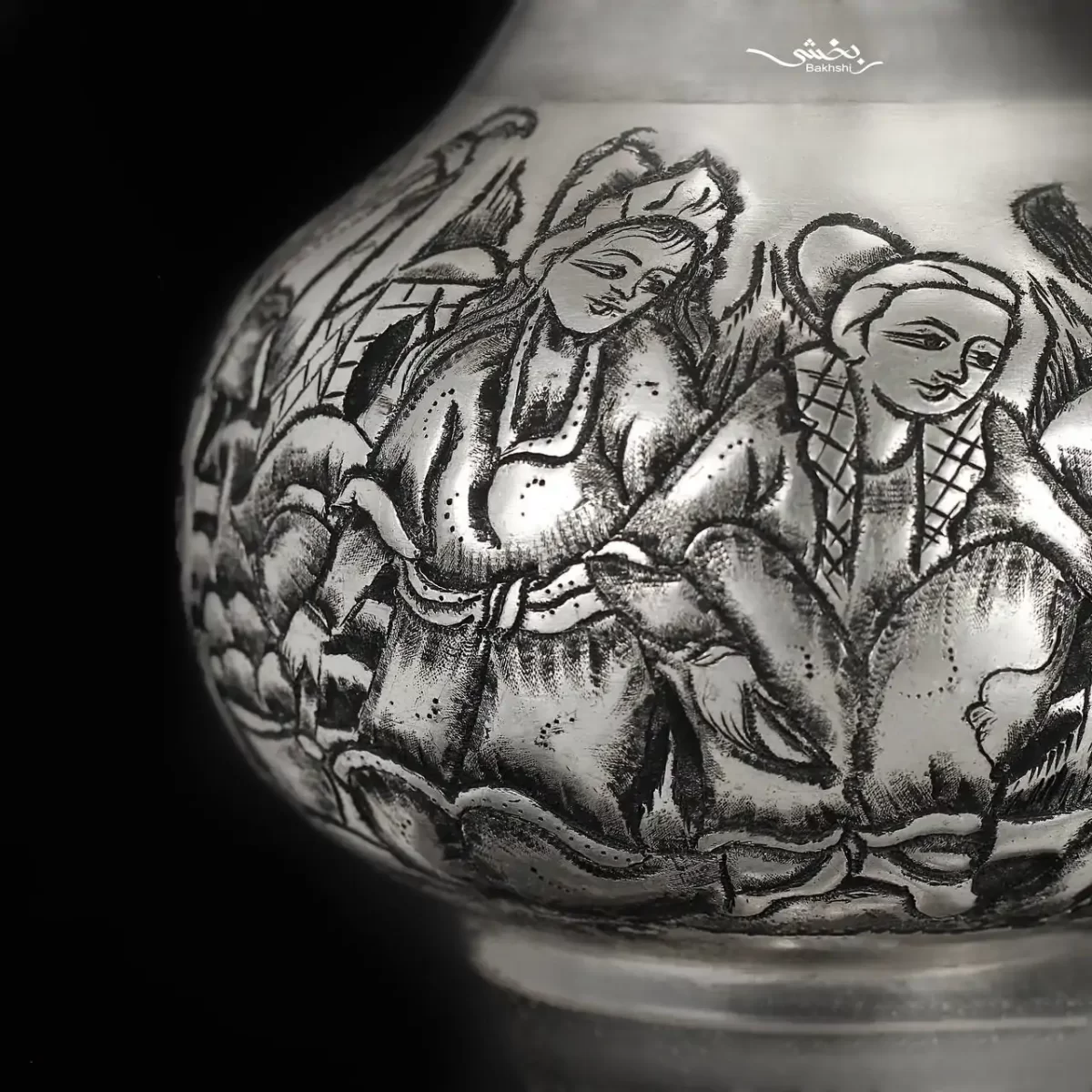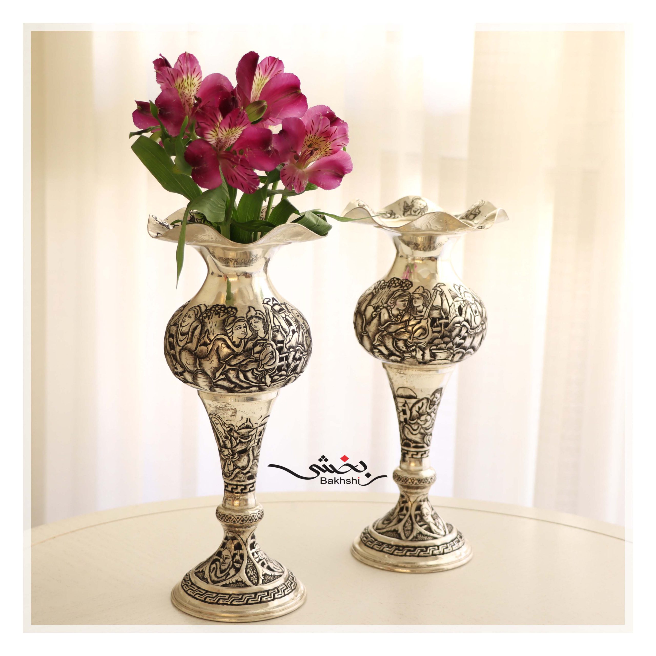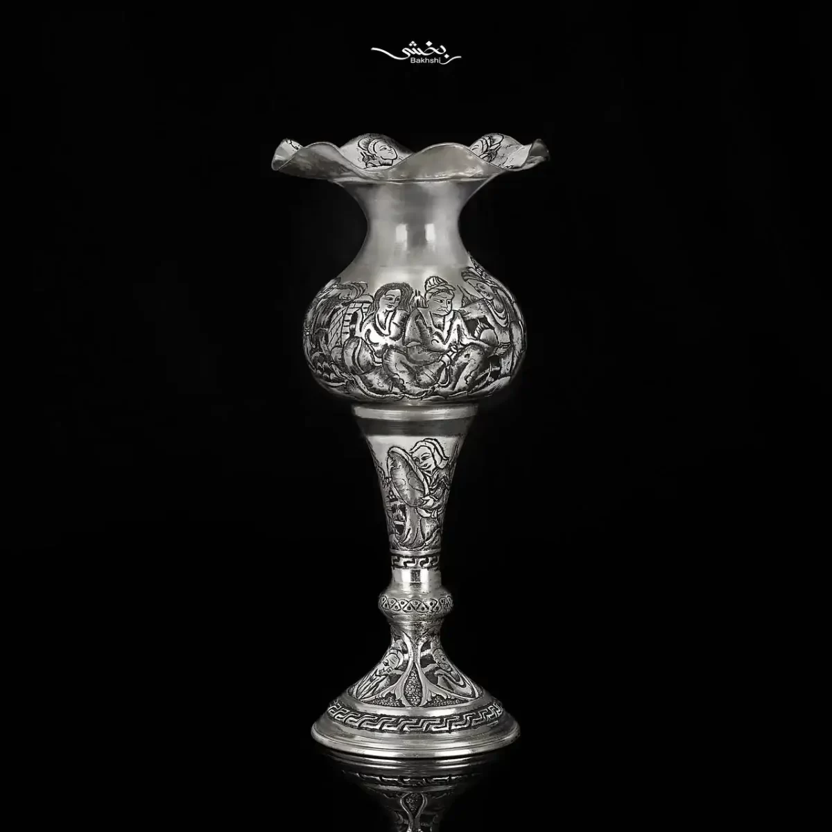 گلدان نقره شکمدار قلم مینیاتور