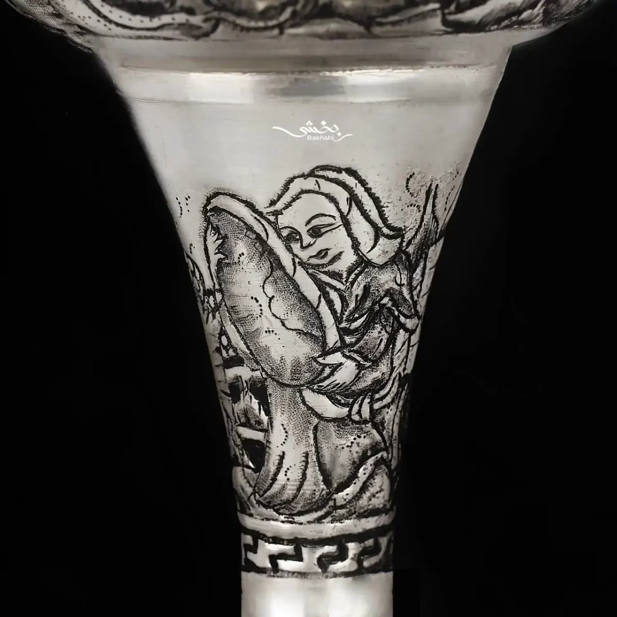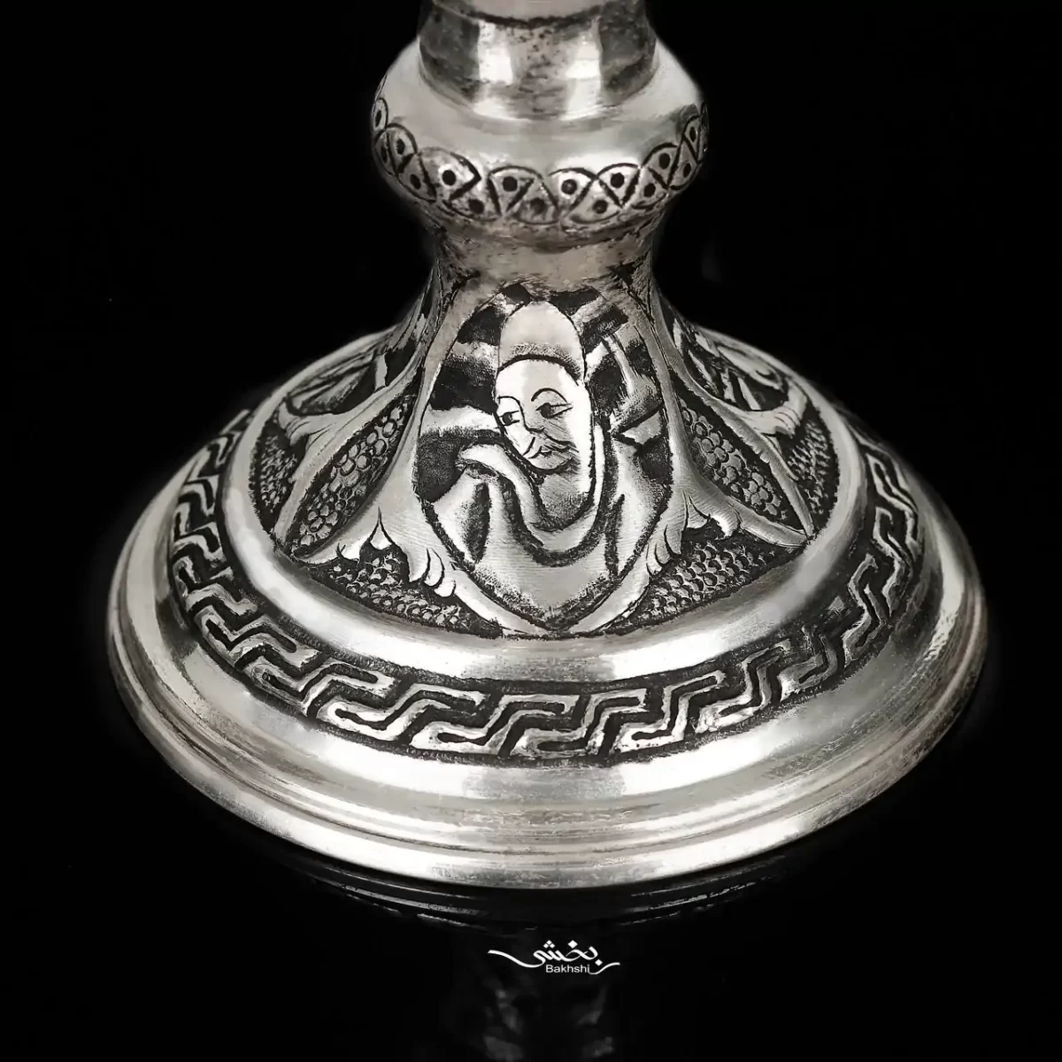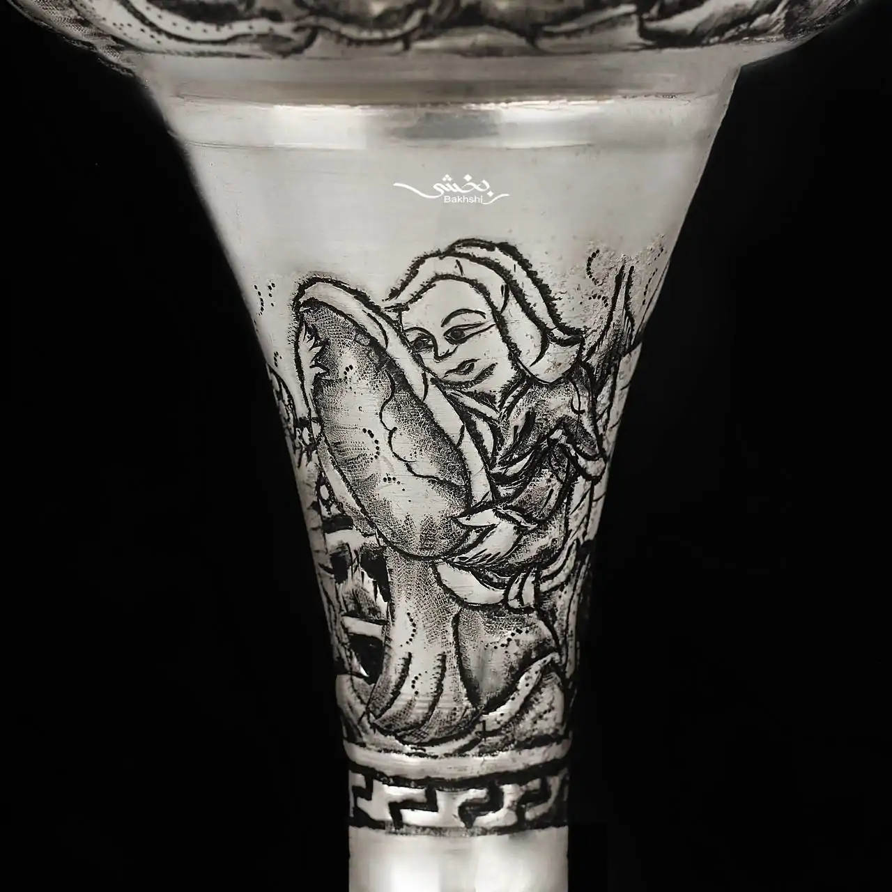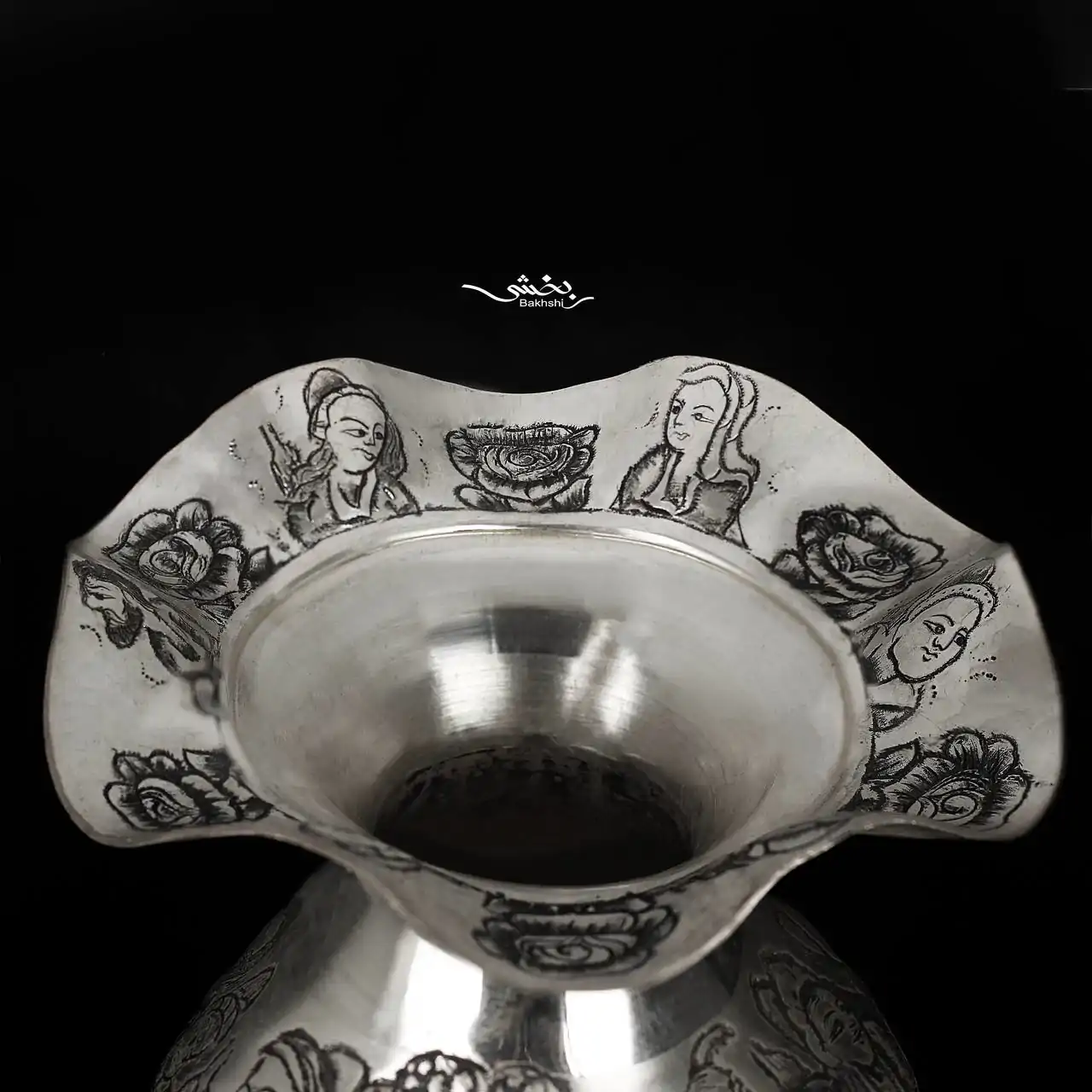 گلدان نقره شکمدار قلم مینیاتور
