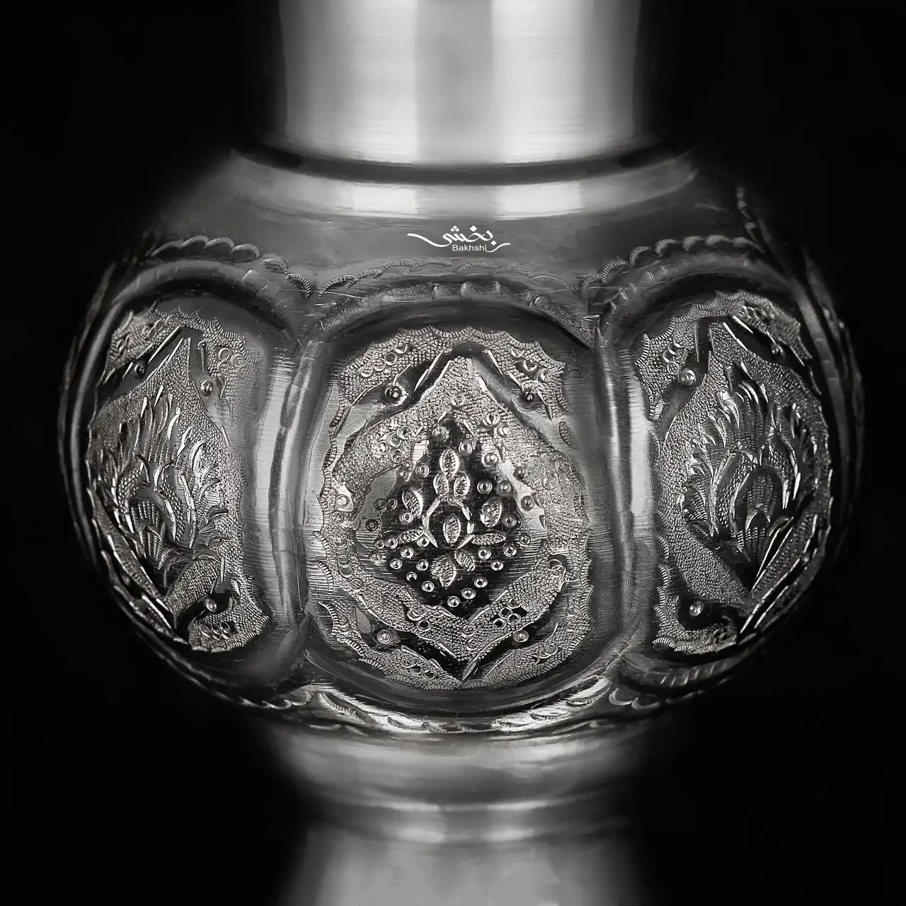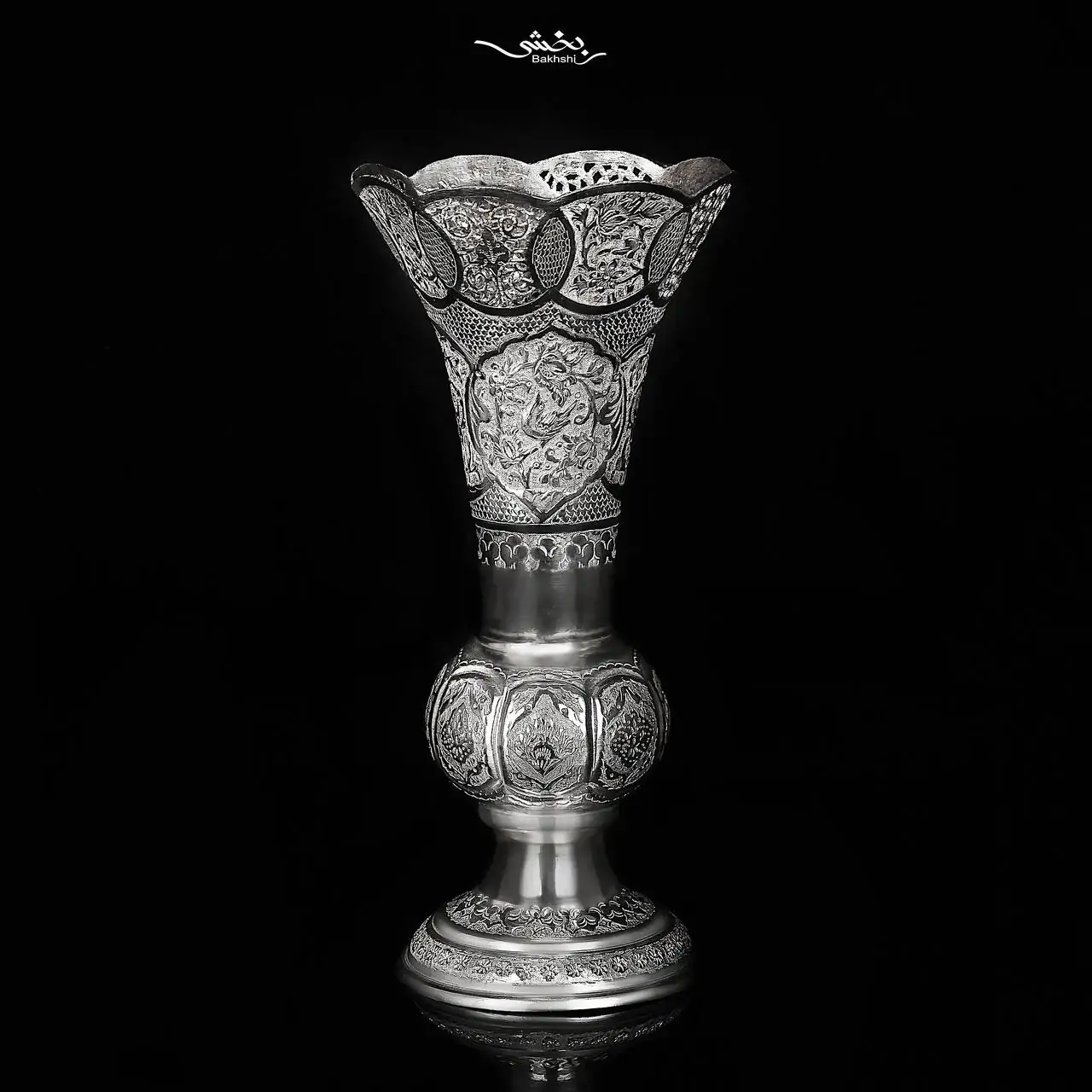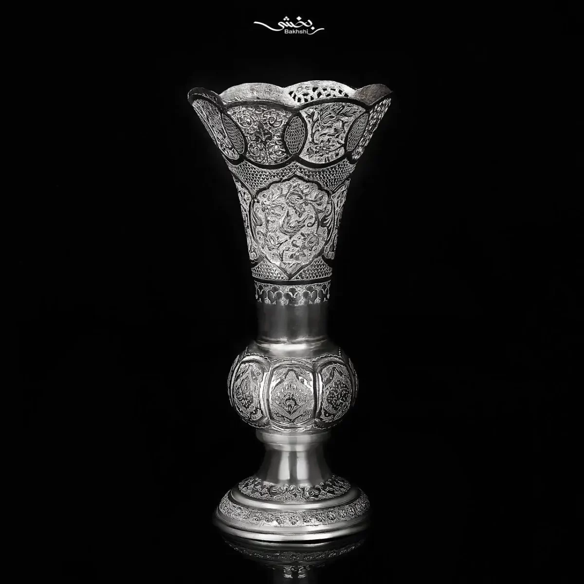 گلدان نقره لاله گل و مرغ