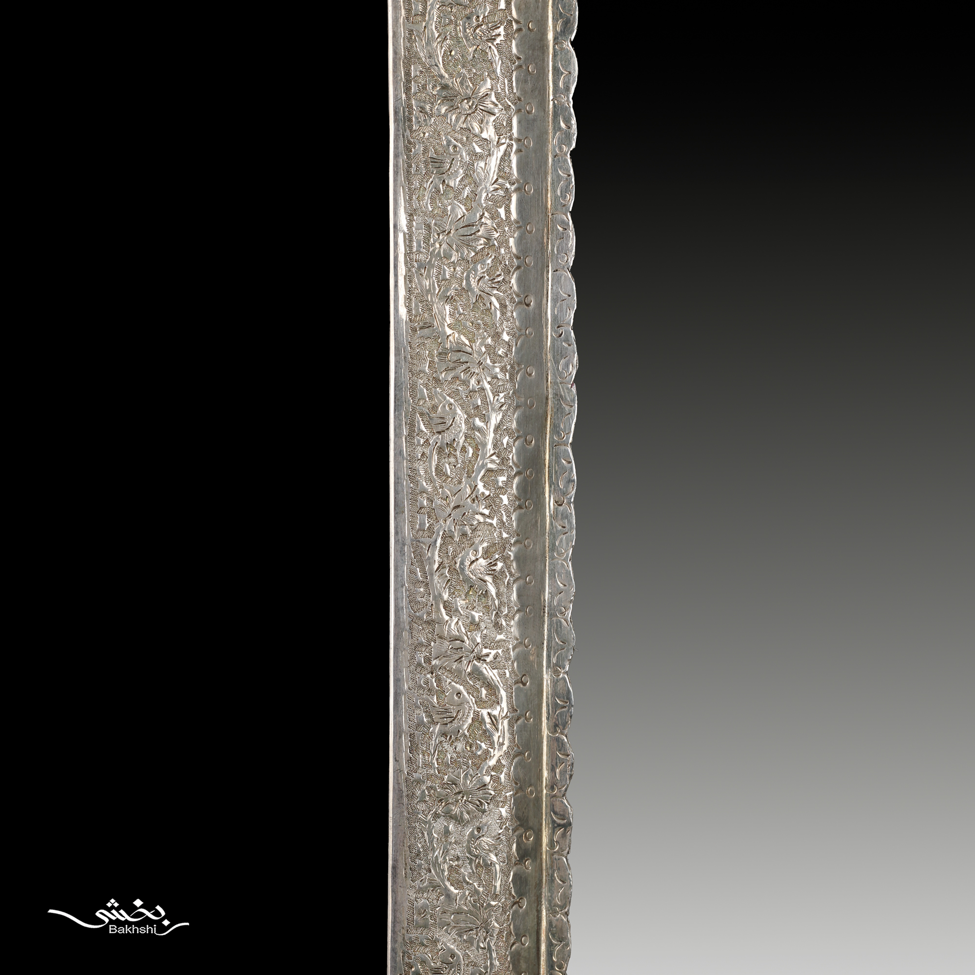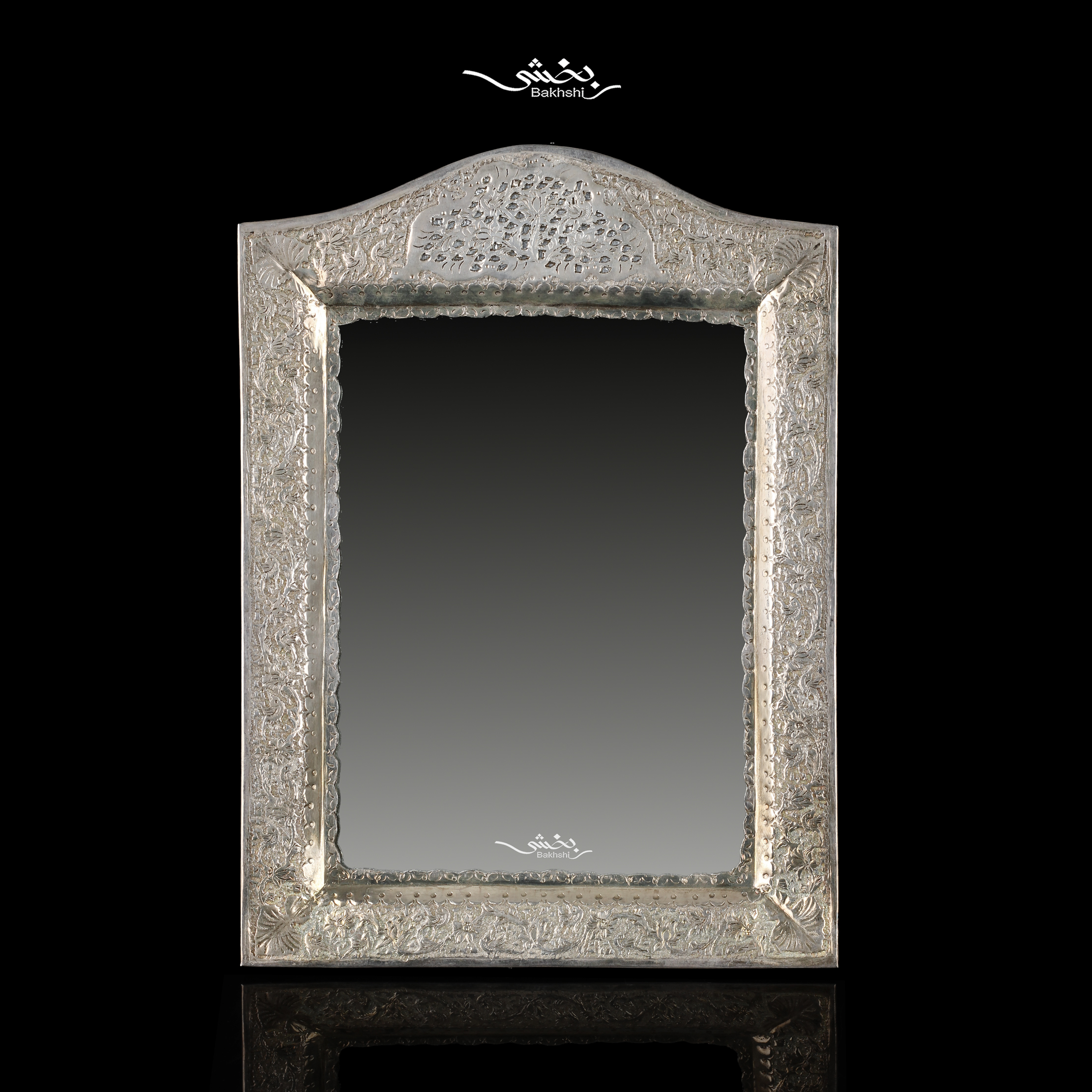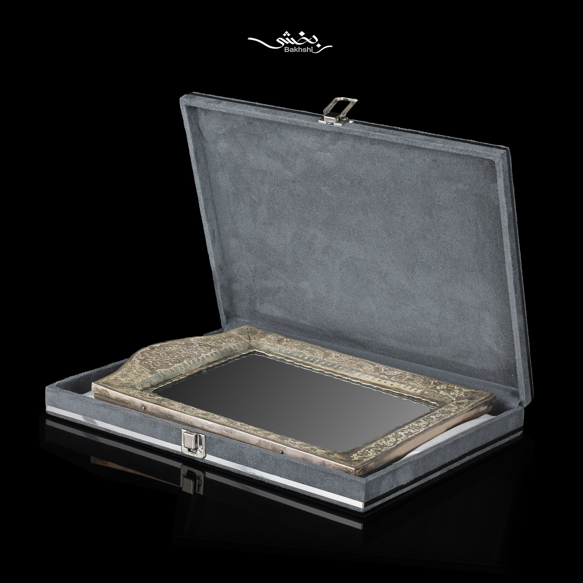 آینه نقره مستطیل تاجدار گل و مرغ – نقره بخشی