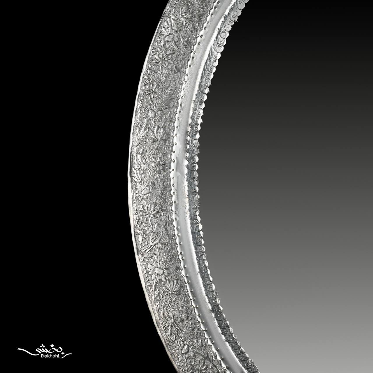 آینه بیضی نقره قلم گل و مرغ – نقره بخشی