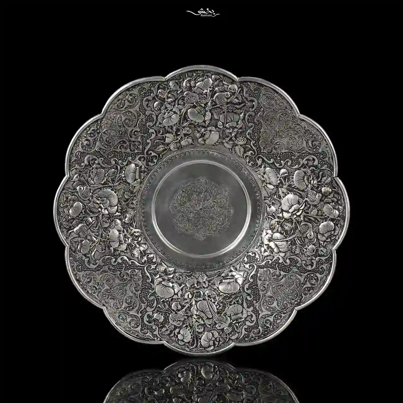 بشقاب نقره گل برجسته اعلا لببرگی یکی از محصولات فاخر و چشمنواز مجموعه نقره بخشی است که با دقت و مهارت بالا ساخته شده است.