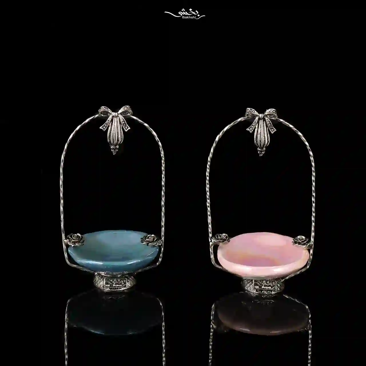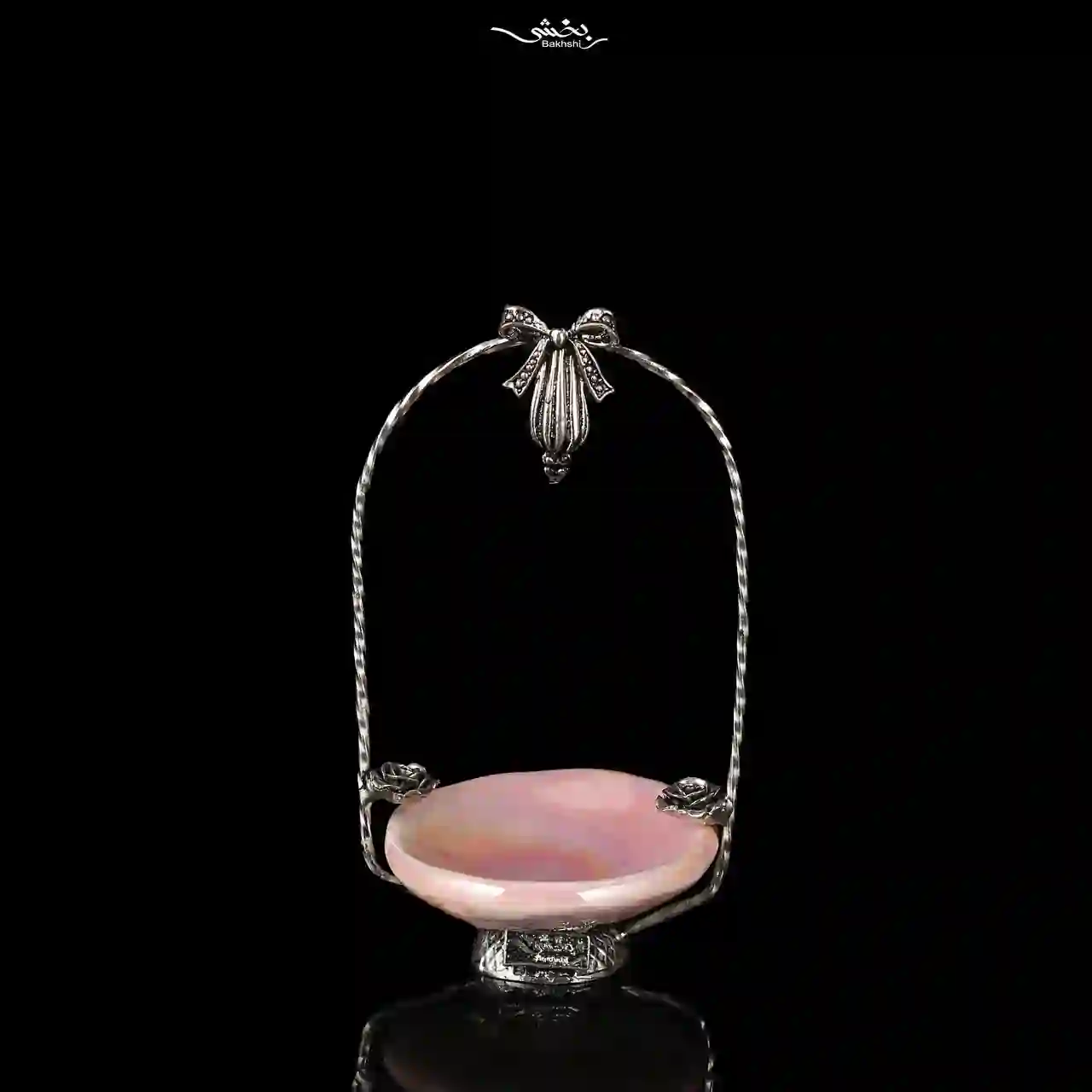 سبد دستهدار سرامیک نقره پاپیون صورتی نقره بخشی