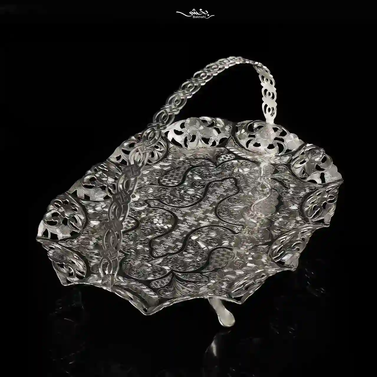 شرح کالا: سبد نقره دستهدار بیضی قلم تبریز