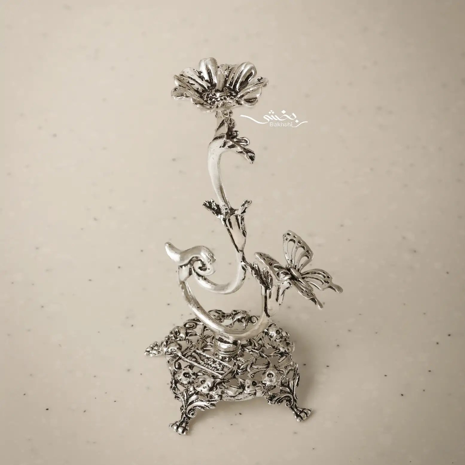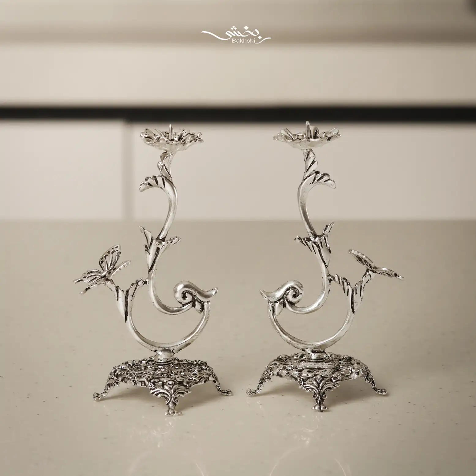 ست آینه شکوفه و شمعدان پروانه نقره مدرن