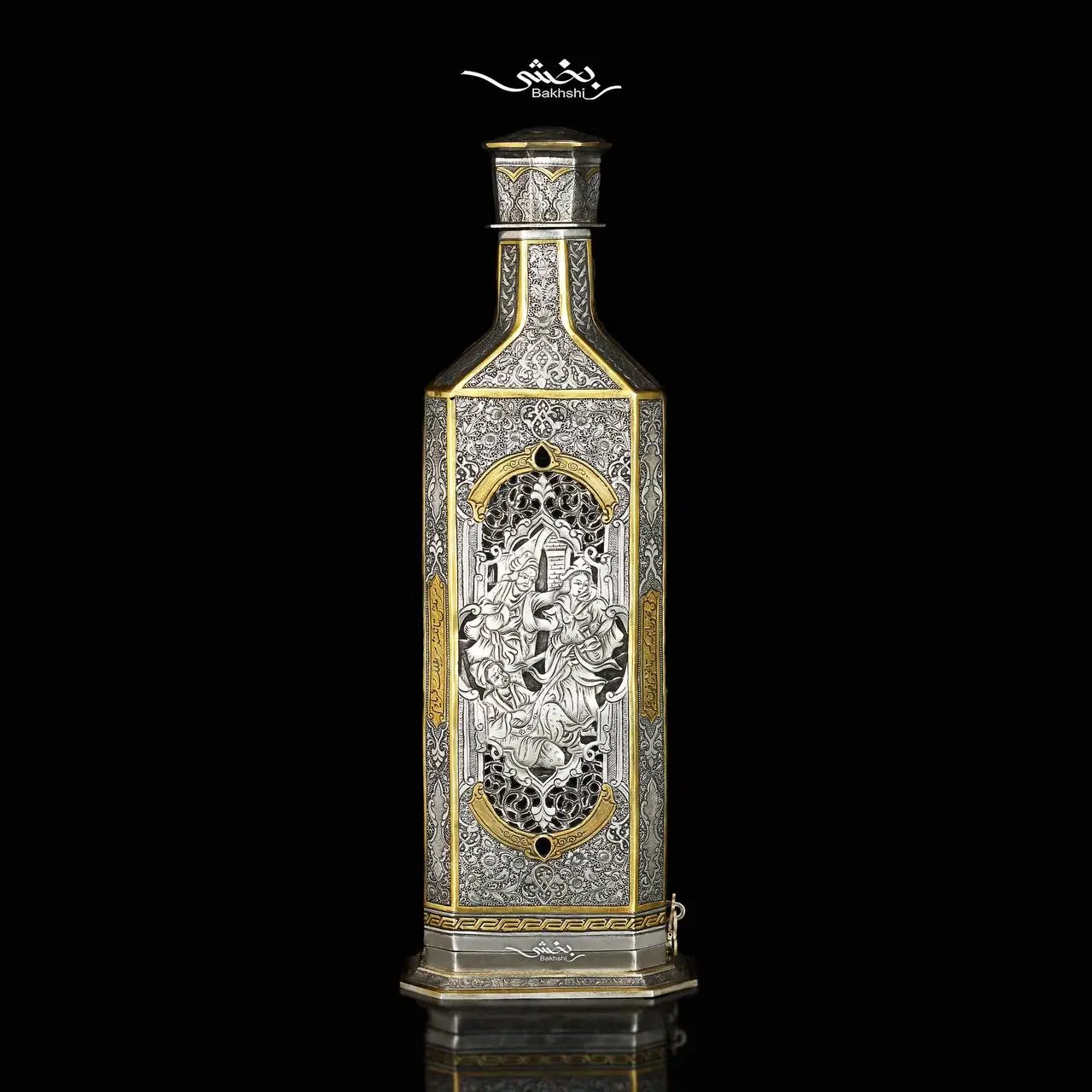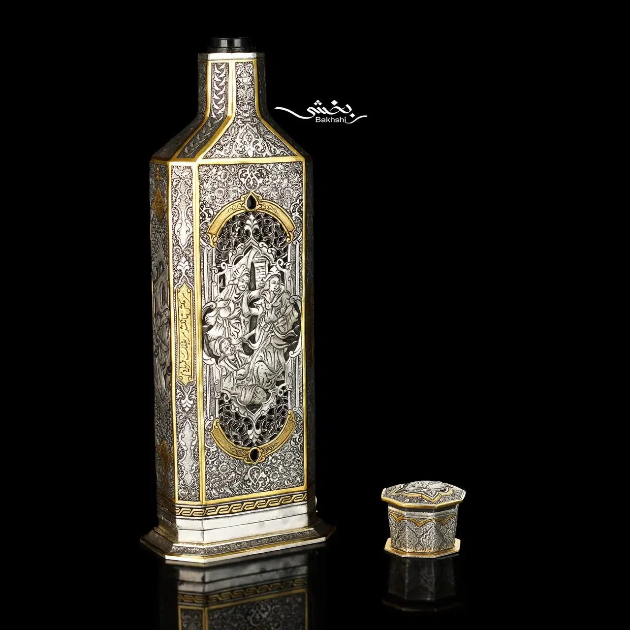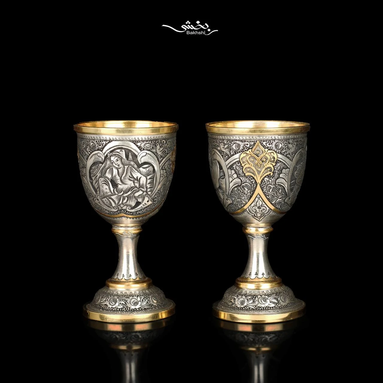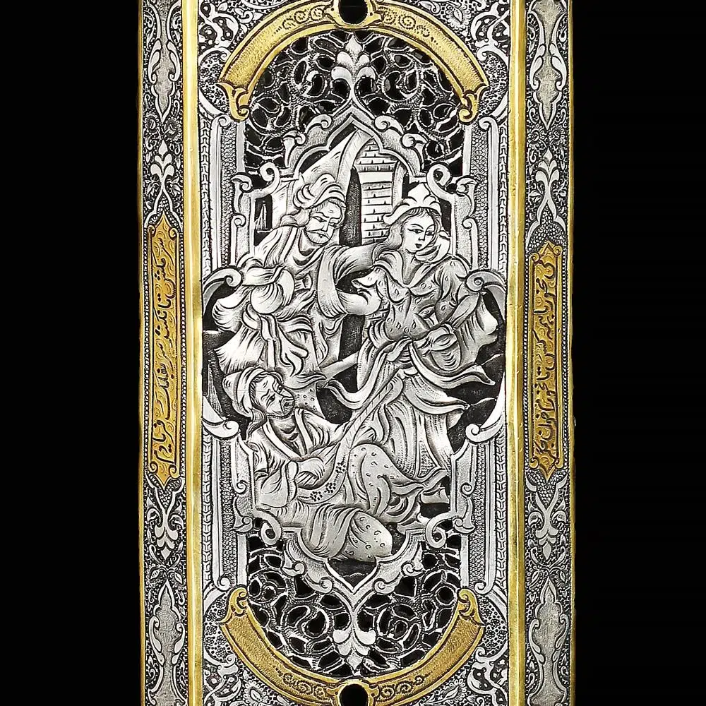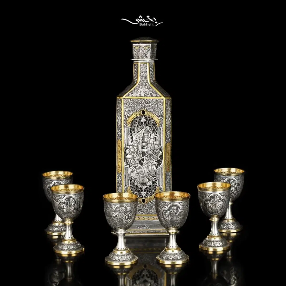 ست شربت خوری و جام نقره مینیاتور ریزقلم اعلا مطلا