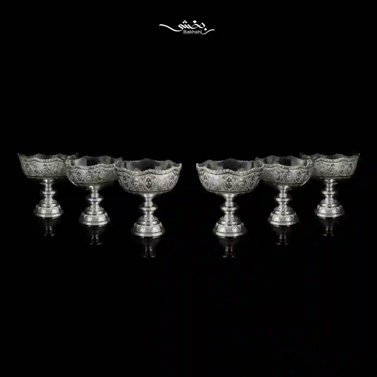 ست شش عددی کاسه پایه دار نقره قلم ترنج