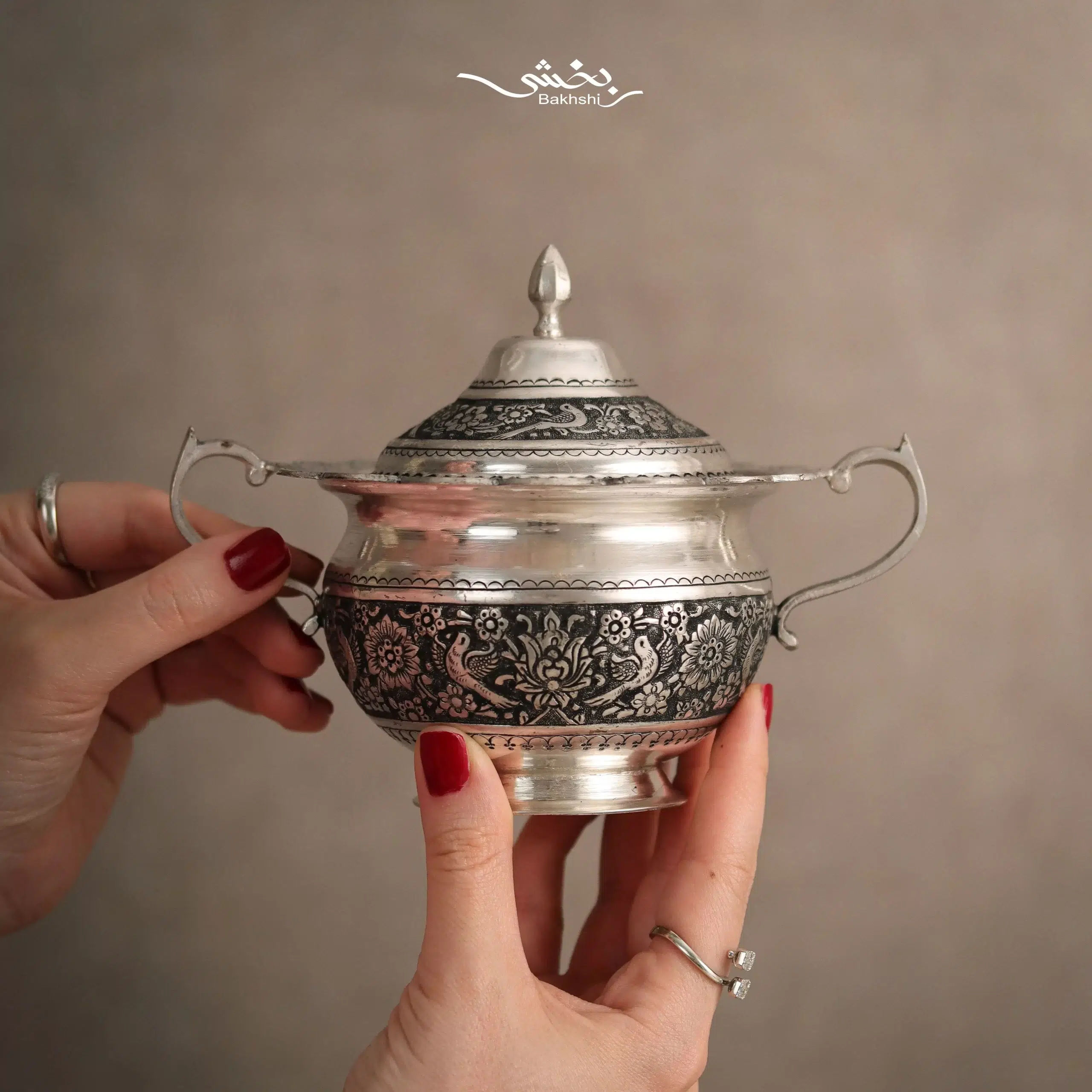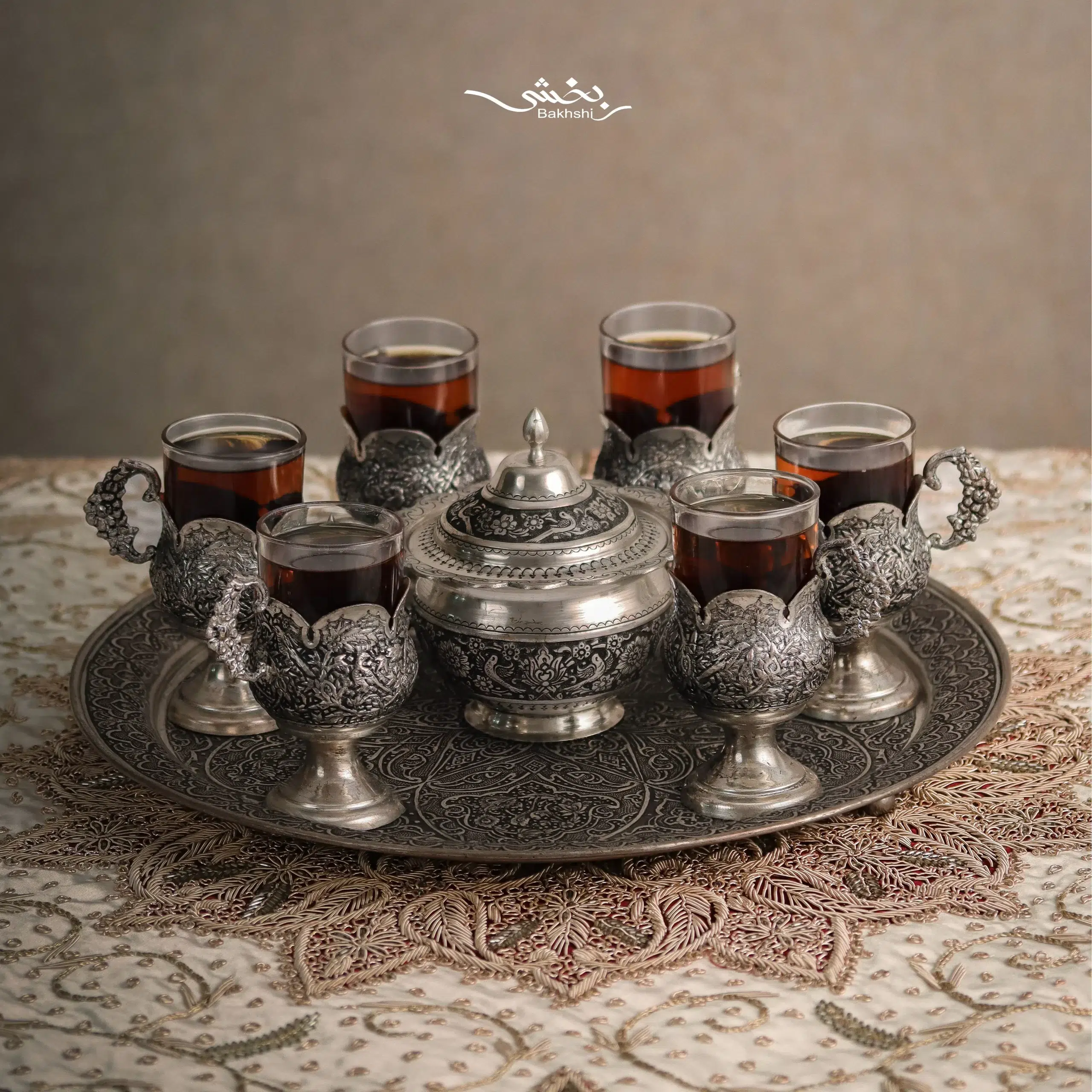 ست چای خوری نقره گل و مرغ درجه یک