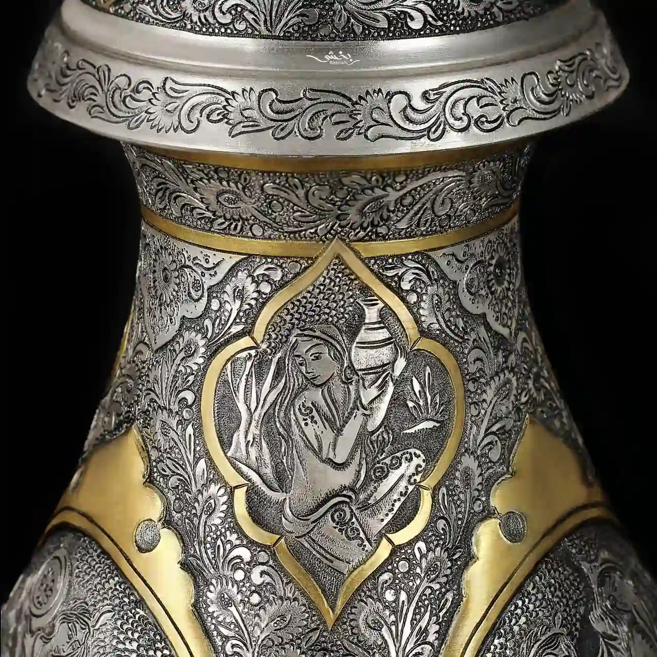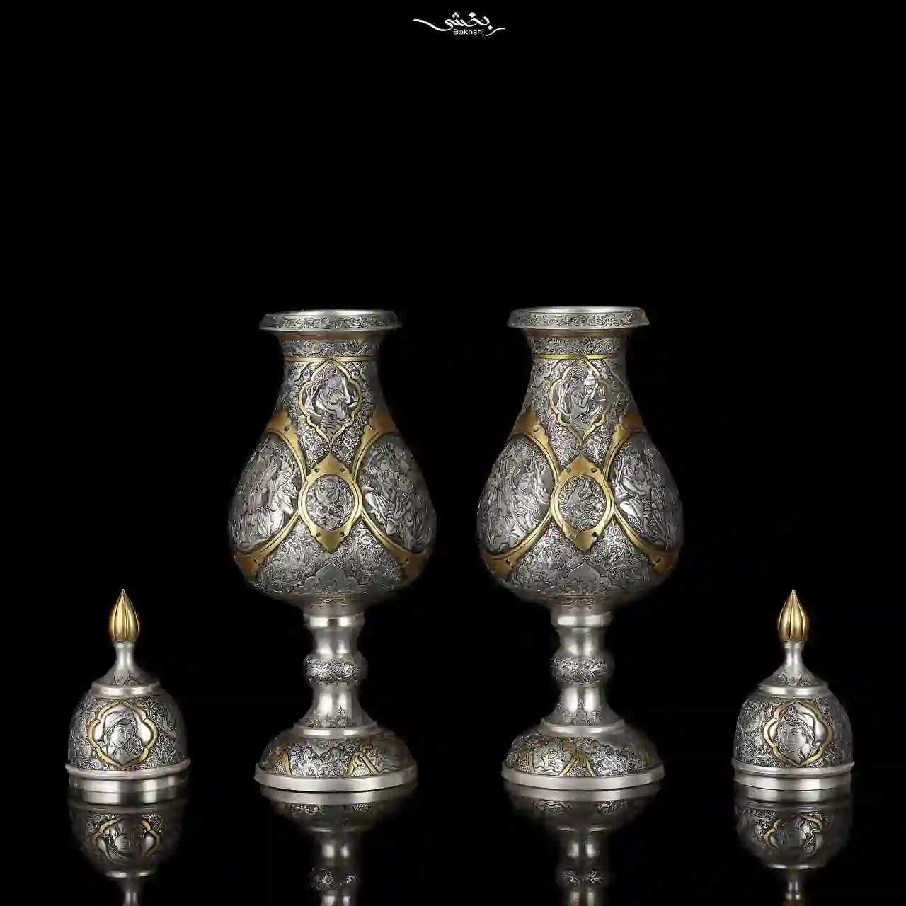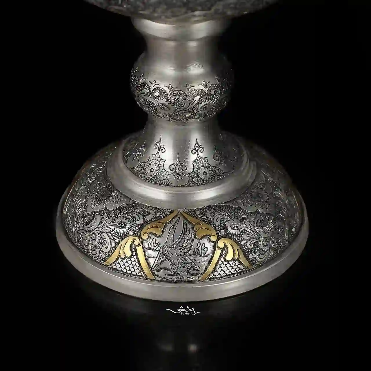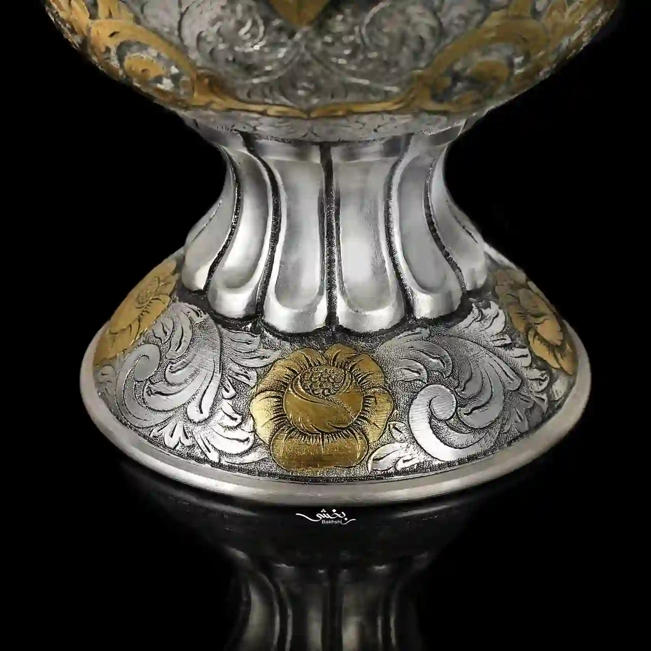 سنبلدان جفتی نقره ملغمه اعلا، ساخته شده از ۲۳۲۷ گرم نقره با عیار ۹۹۹ و با ارتفاع ۴۰ سانتیمتر و قطر شکم ۱۳ سانتیمتر، انتخابی مناسب برای دکوراسیونهای فاخر، ویترین و چیدمانهای رسمی است. این سنبلدان کاربردی برای تزئین فضا و نگهداری گلهای طبیعی یا مصنوعی بوده و همراه با بستهبندی کادویی 🎁 در فروشگاه و سایت نقره بخشی عرضه میشود.