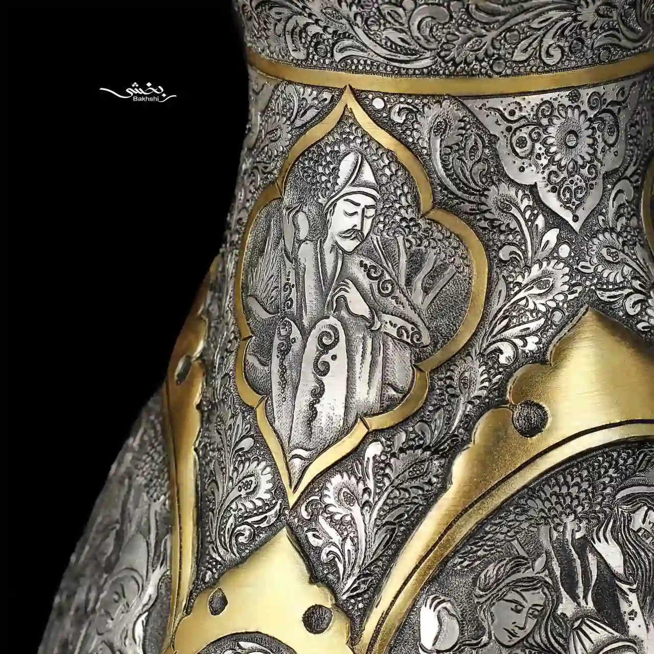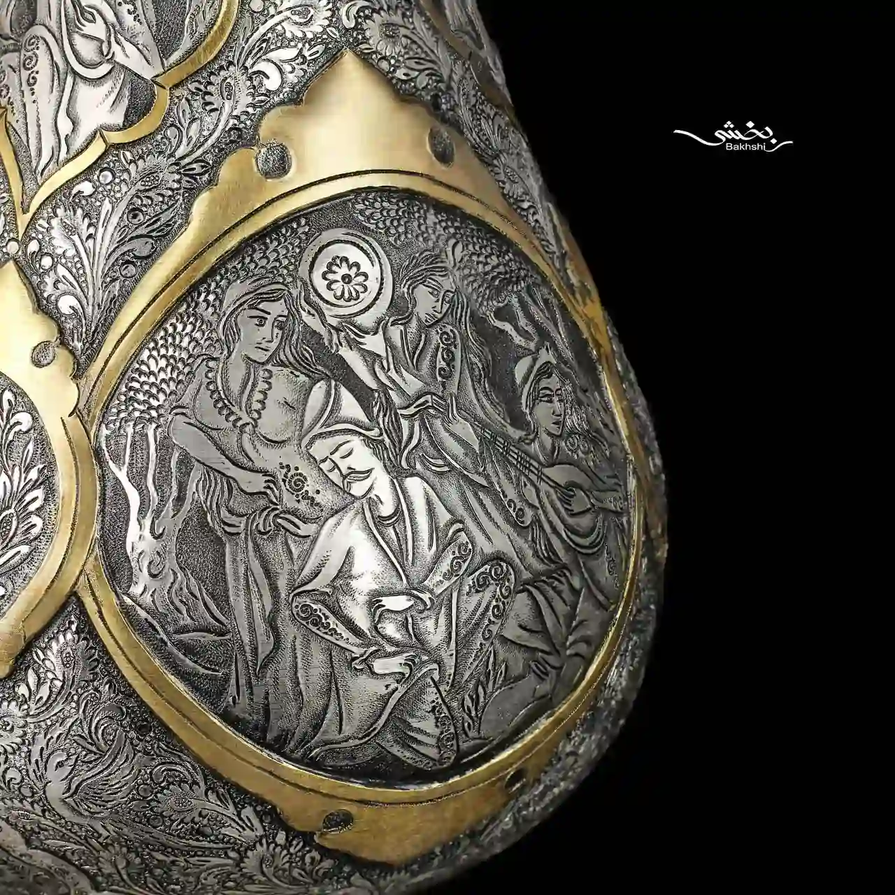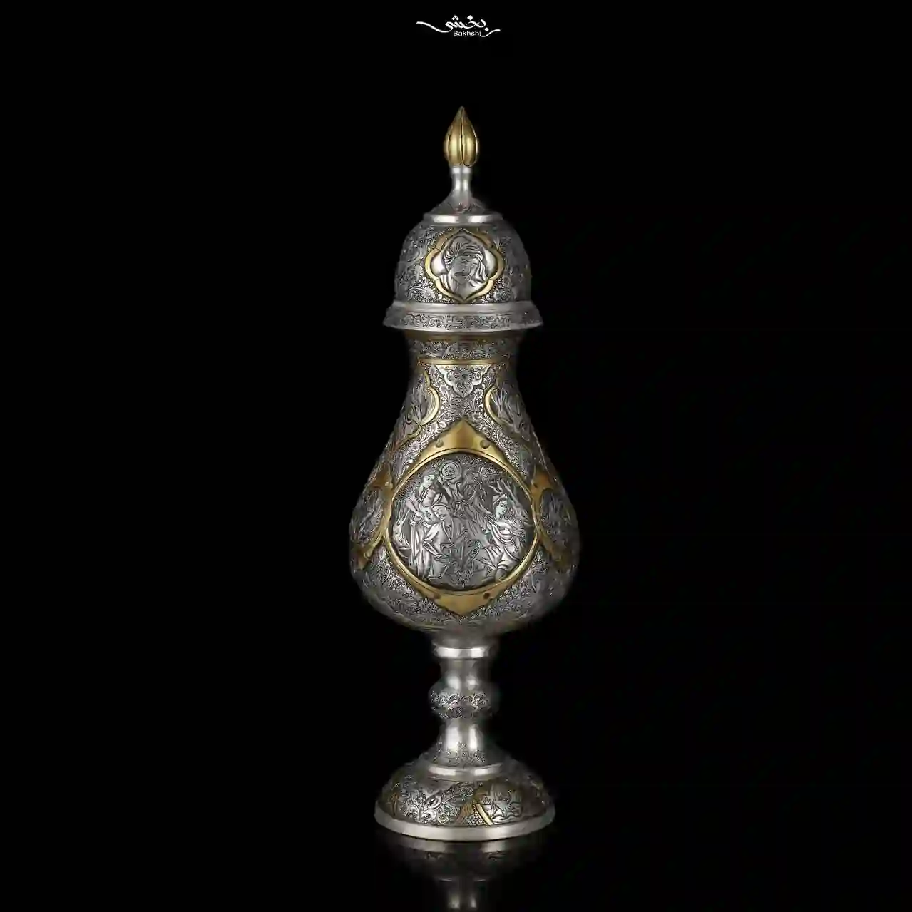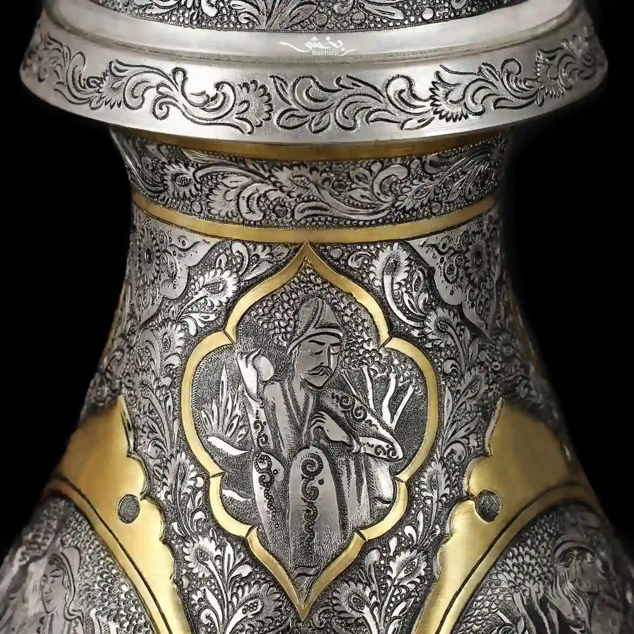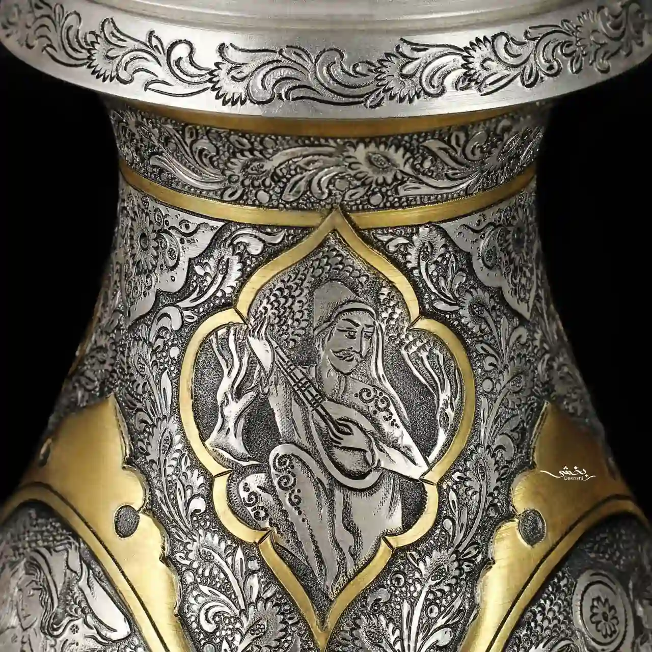 سنبلدان جفتی نقره ملغمه اعلا، ساخته شده از ۲۳۲۷ گرم نقره با عیار ۹۹۹ و با ارتفاع ۴۰ سانتیمتر و قطر شکم ۱۳ سانتیمتر، انتخابی مناسب برای دکوراسیونهای فاخر، ویترین و چیدمانهای رسمی است. این سنبلدان کاربردی برای تزئین فضا و نگهداری گلهای طبیعی یا مصنوعی بوده و همراه با بستهبندی کادویی 🎁 در فروشگاه و سایت نقره بخشی عرضه میشود.
