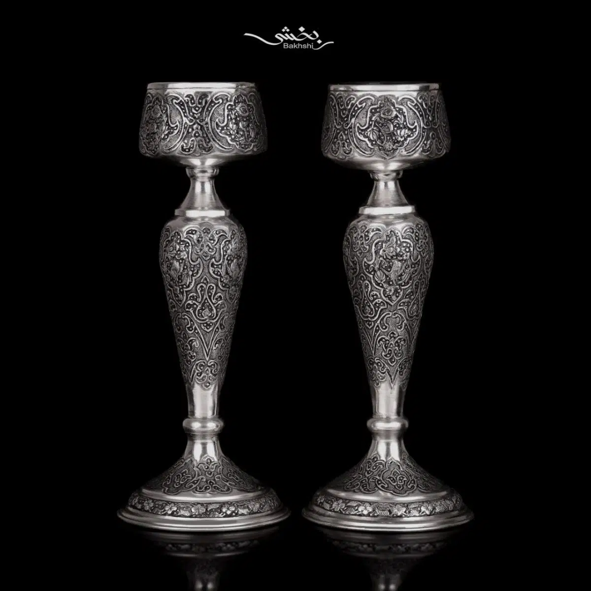 شمعدان نقره حباب خور بلند اسلیمی اعلا