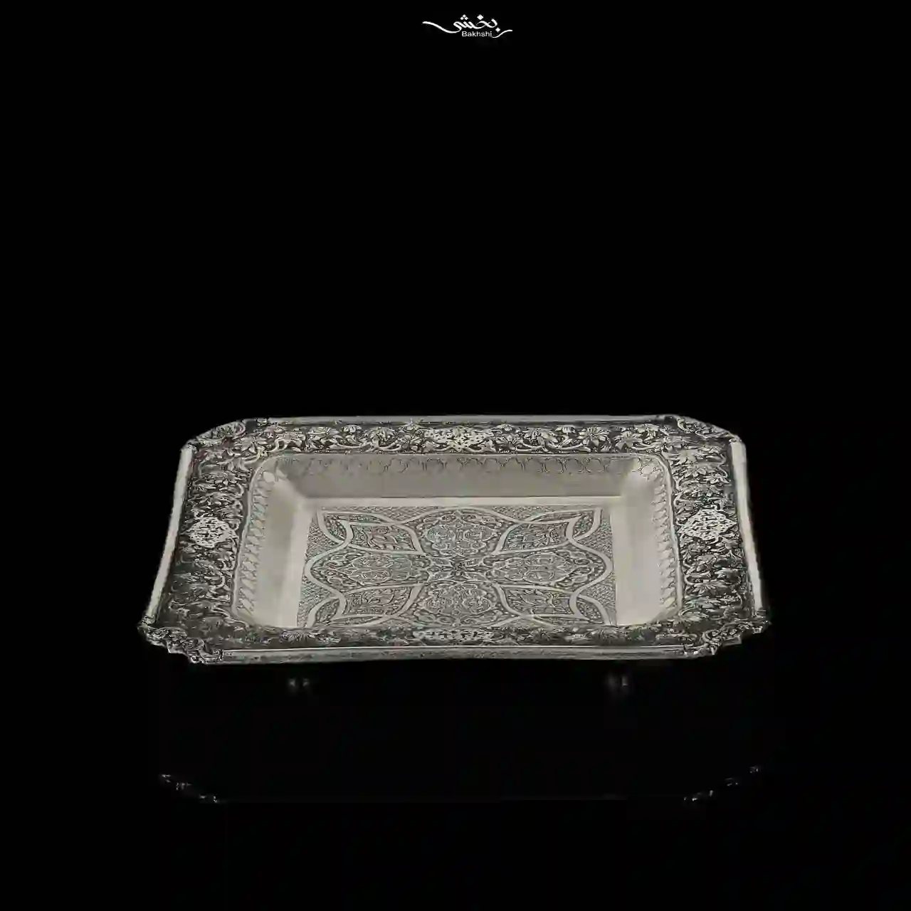 شیرینیخوری مربع نقره گل و بوته – نقره بخشی