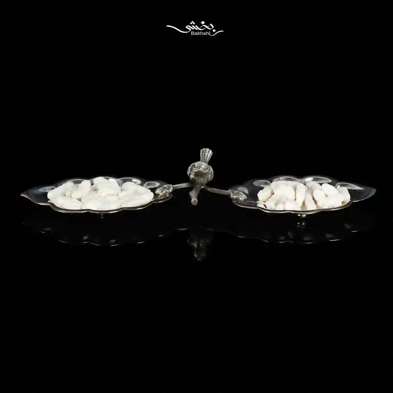 شیرینی خوری نقره دوقلو برگ بلوط و گنجشک