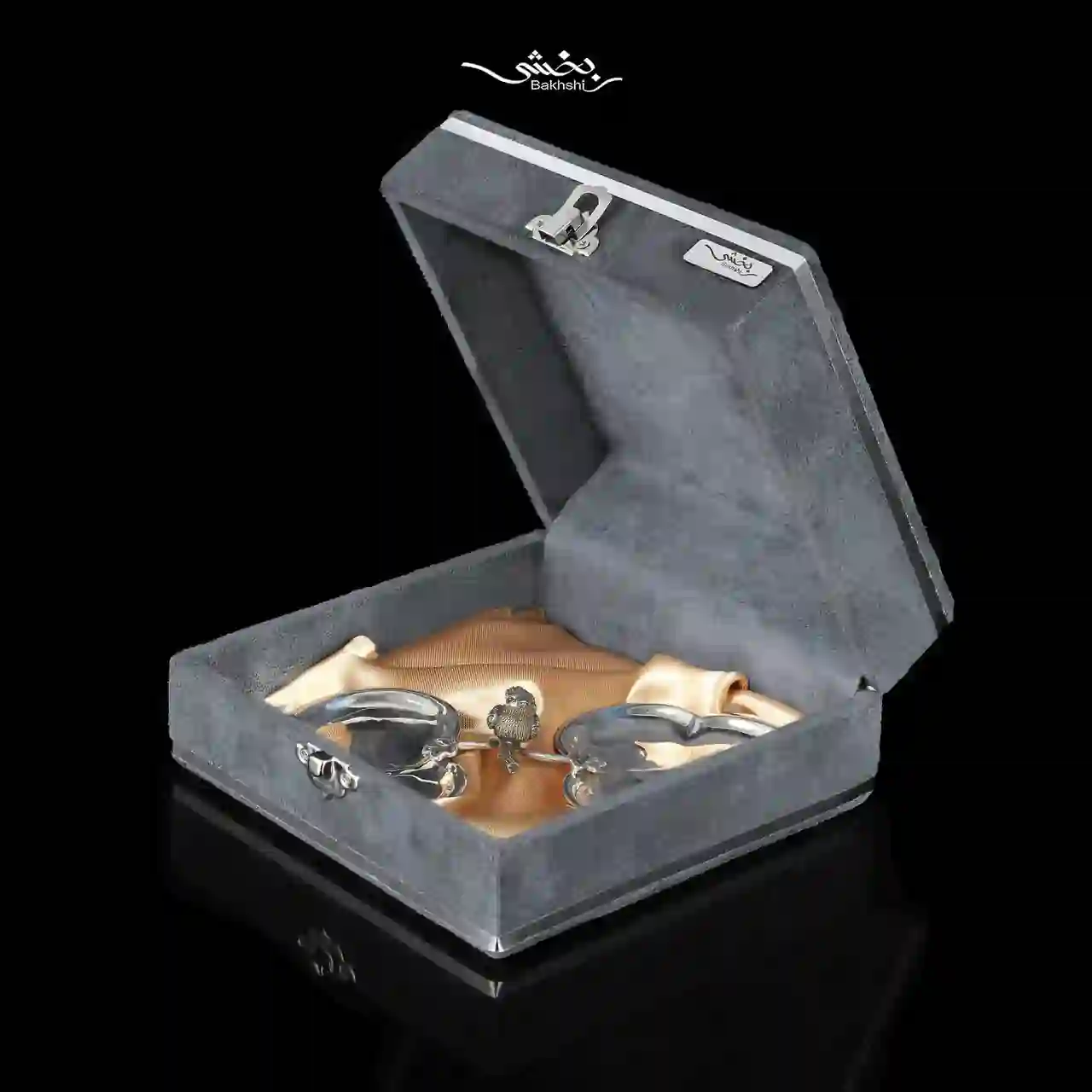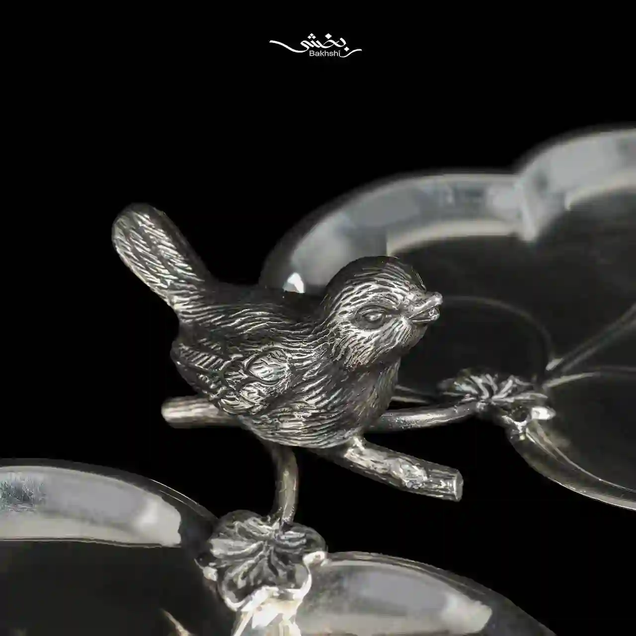 شیرینیخوری نقره دوقلو مدرن طرح گنجشک – نقره بخشی
