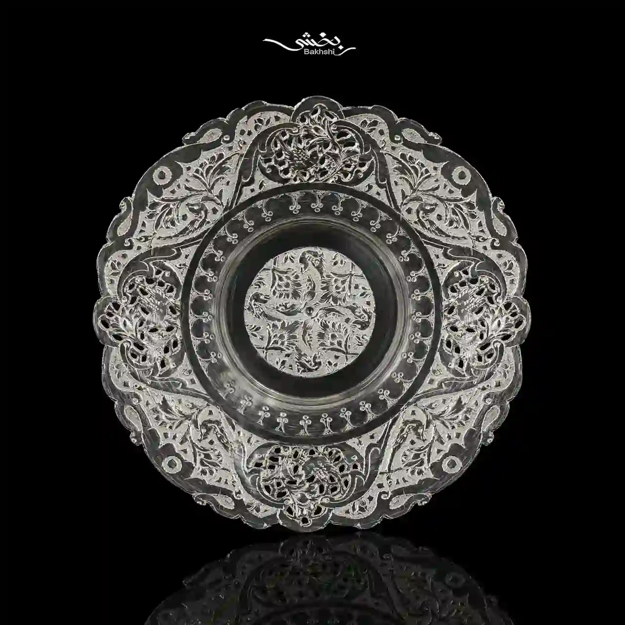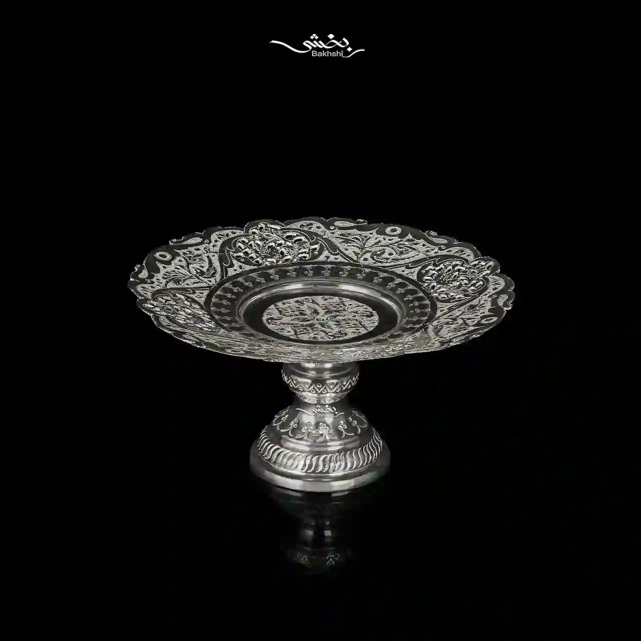 شیرینی خوری نقره پایه دار قلم گل و مرغ
