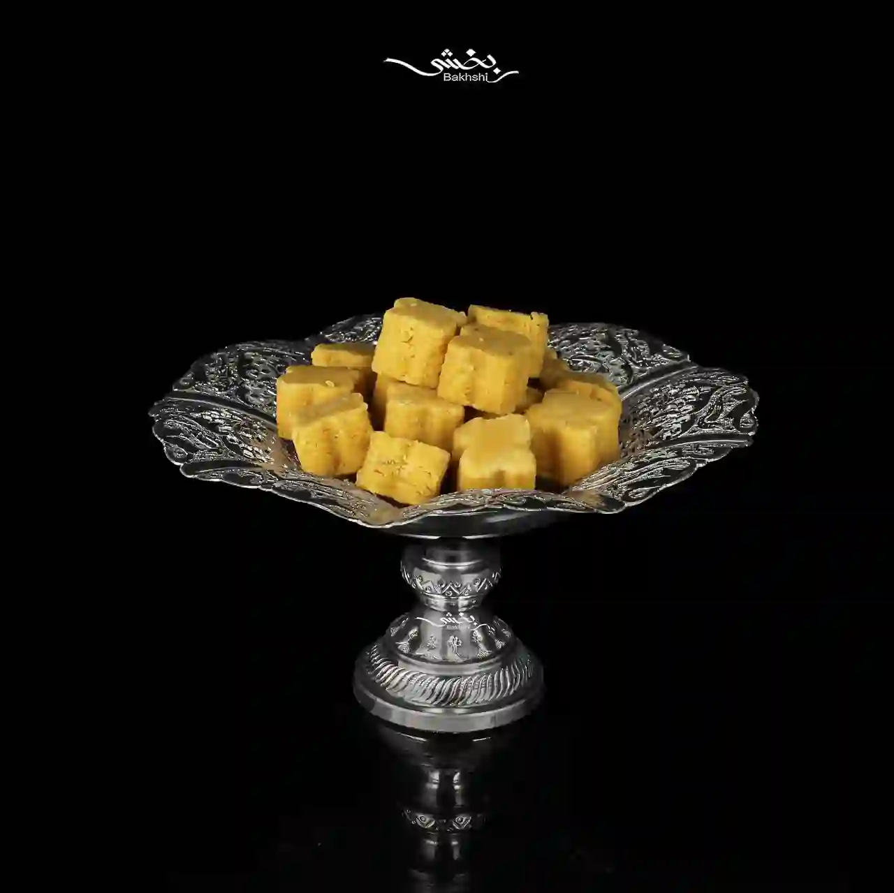 شیرینی خوری نقره پایه دار قلم گل و مرغ
