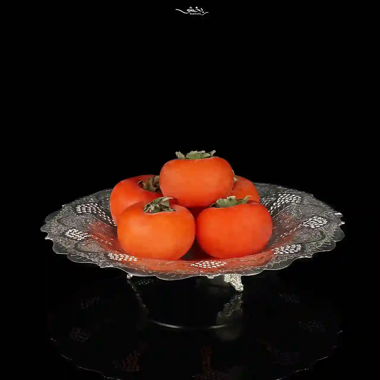 شیرینی خوری نقره گرد قلم گل و مرغ پایه ریختگی