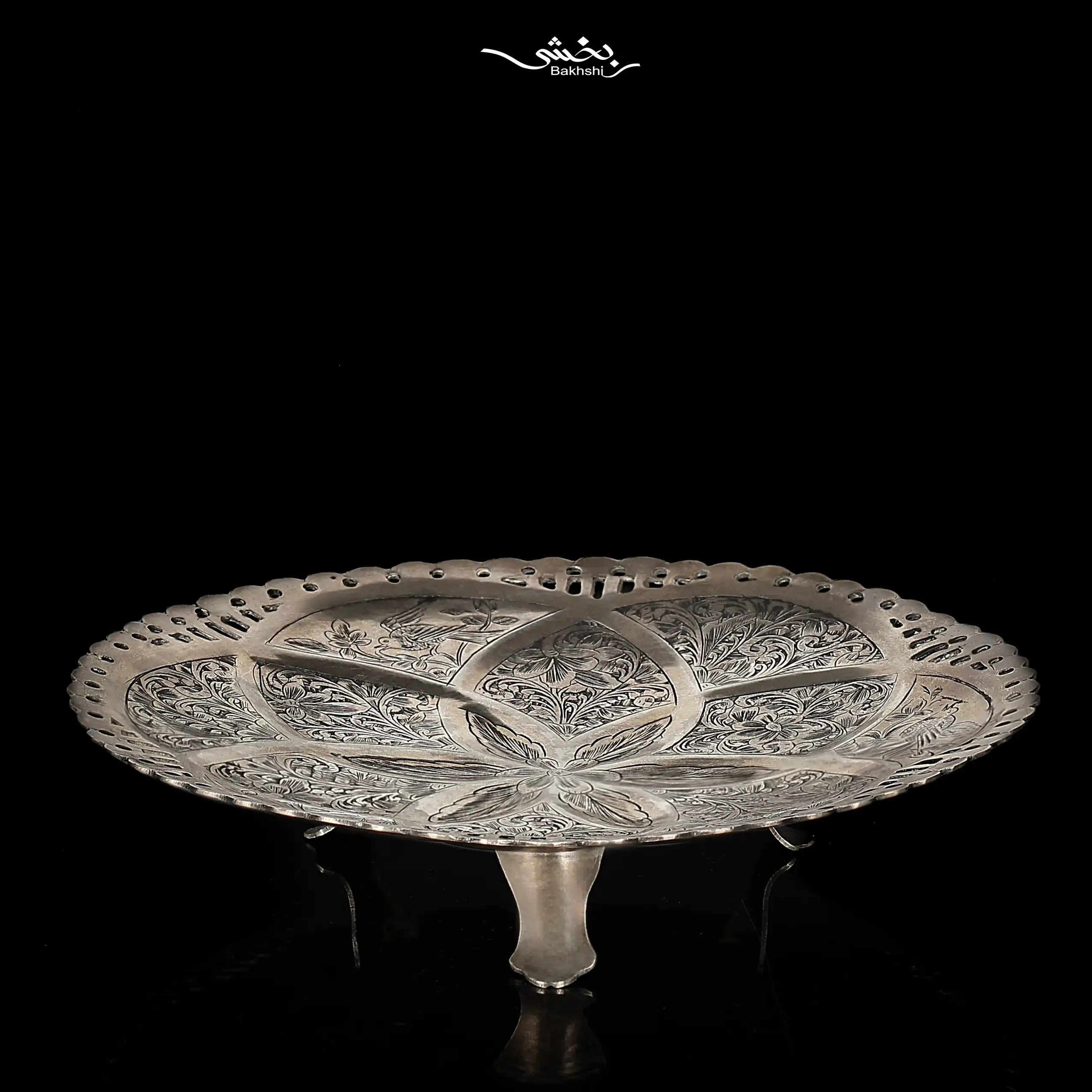 شیرینی خوری نقره 6 عددی قلم گل و مرغ