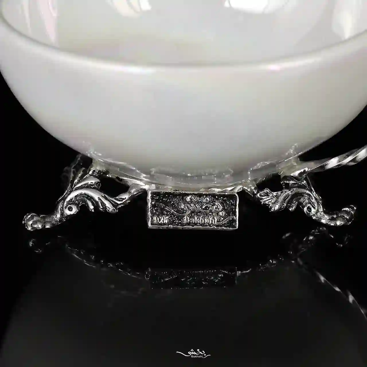 - شرح کالا: کاسه دستهدار نیمهسرامیک نقره
