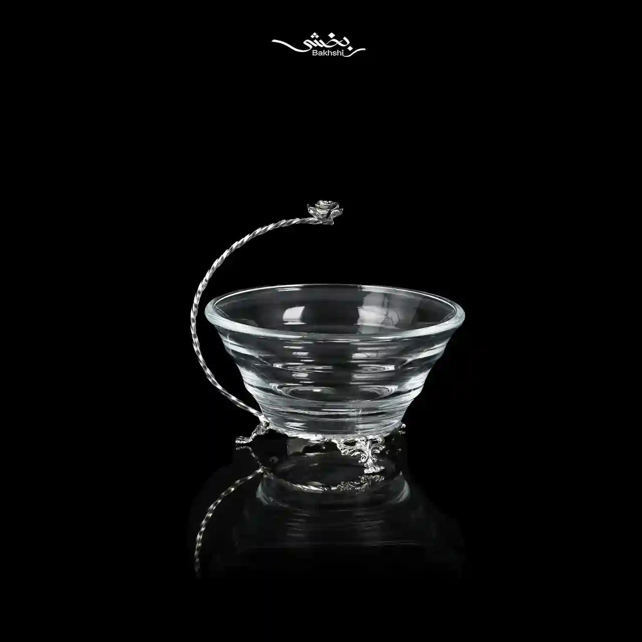 کاسه دستهنیمه گل بلور نقره – نقره بخشی