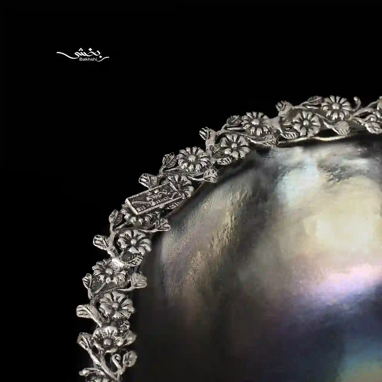این کاسه با قطر ۲۰ سانتیمتر و ارتفاع ۸ سانتیمتر طراحی شده و بخش نقرهای آن از ۶۷ گرم نقره با عیار ۹۲.۵٪ ساخته شده است. ساختار زیبا و ابعاد کاربردی آن، مناسب سرو آجیل، شیرینی، خوراکیهای مهمانی و چیدمانهای دکوری میباشد.