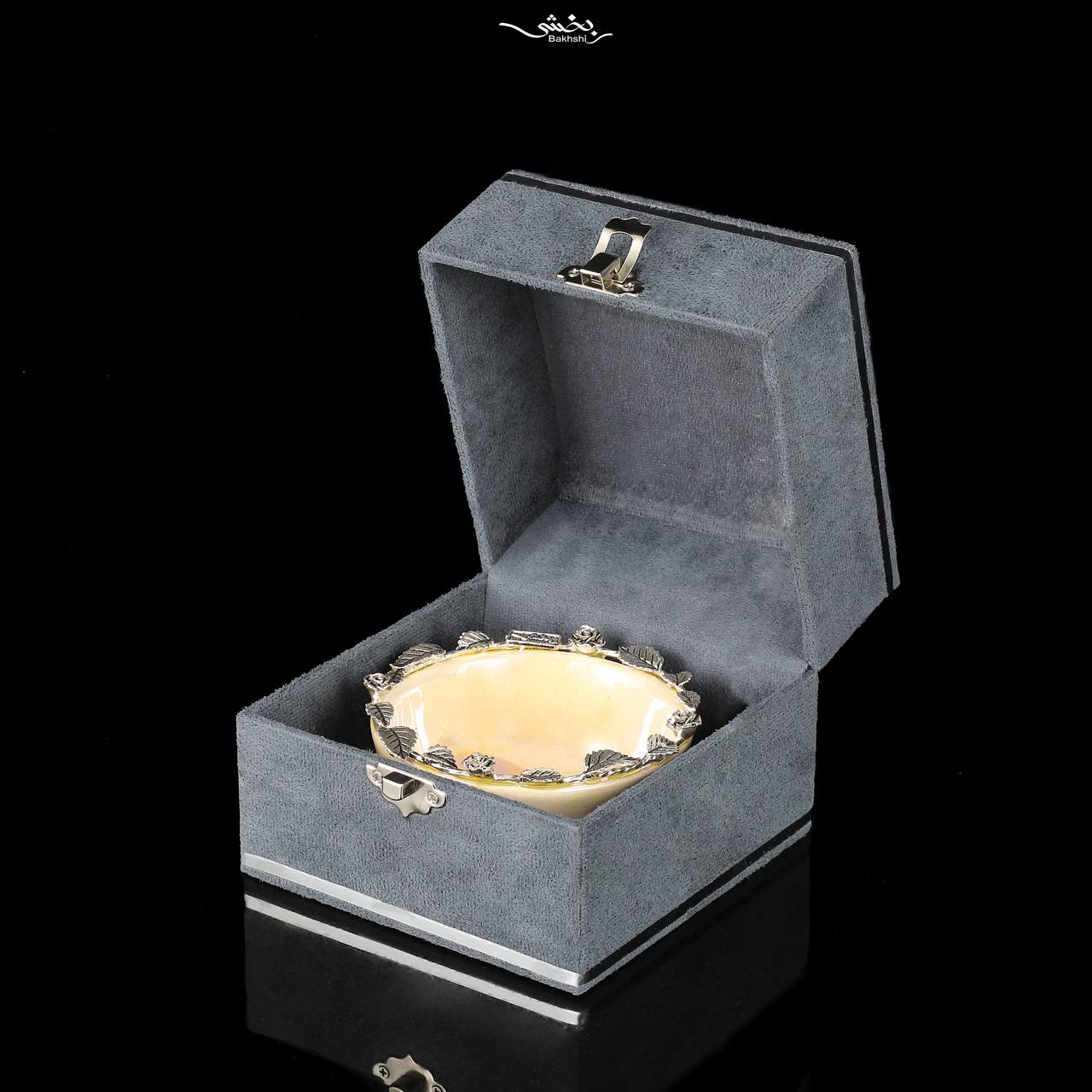 کاسه سرامیک و نقره دورگل کرمی نقره بخشی