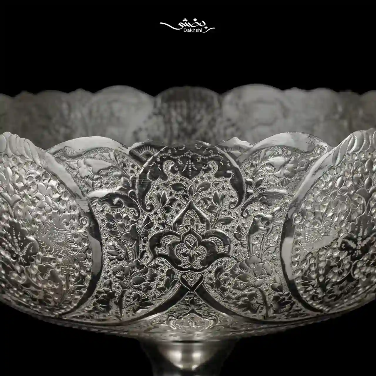 کاسه نقره پایهبلند گل و مرغ – نقره بخشی