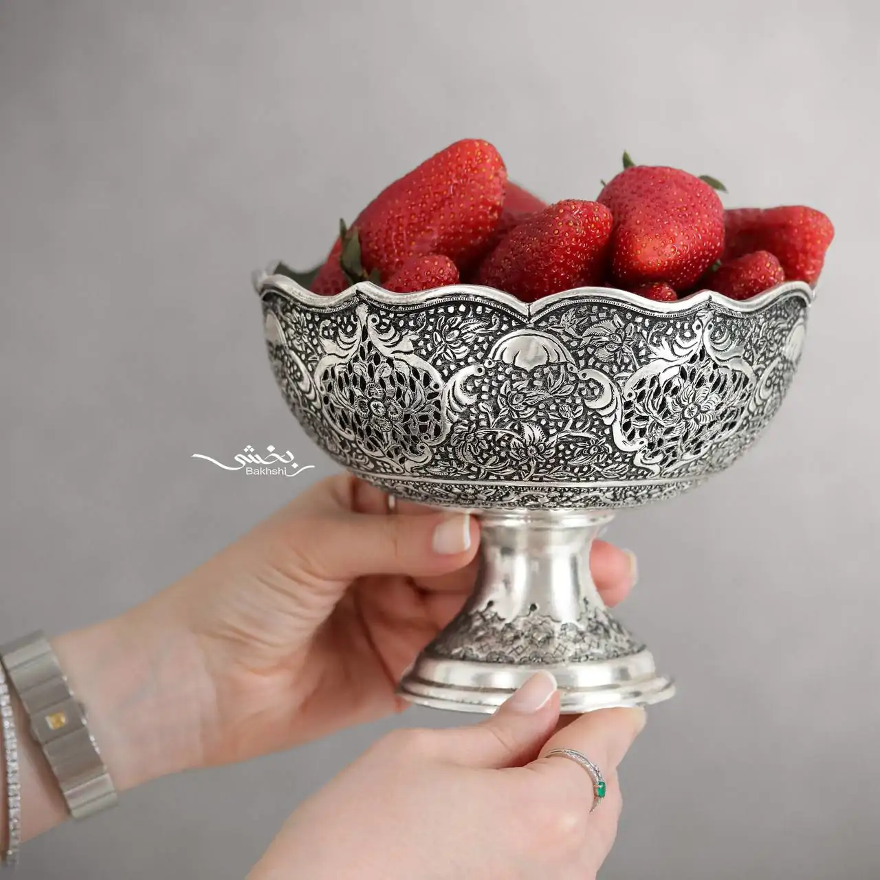 کاسه نقره پایه گلدانی گل و مرغ درجه یک