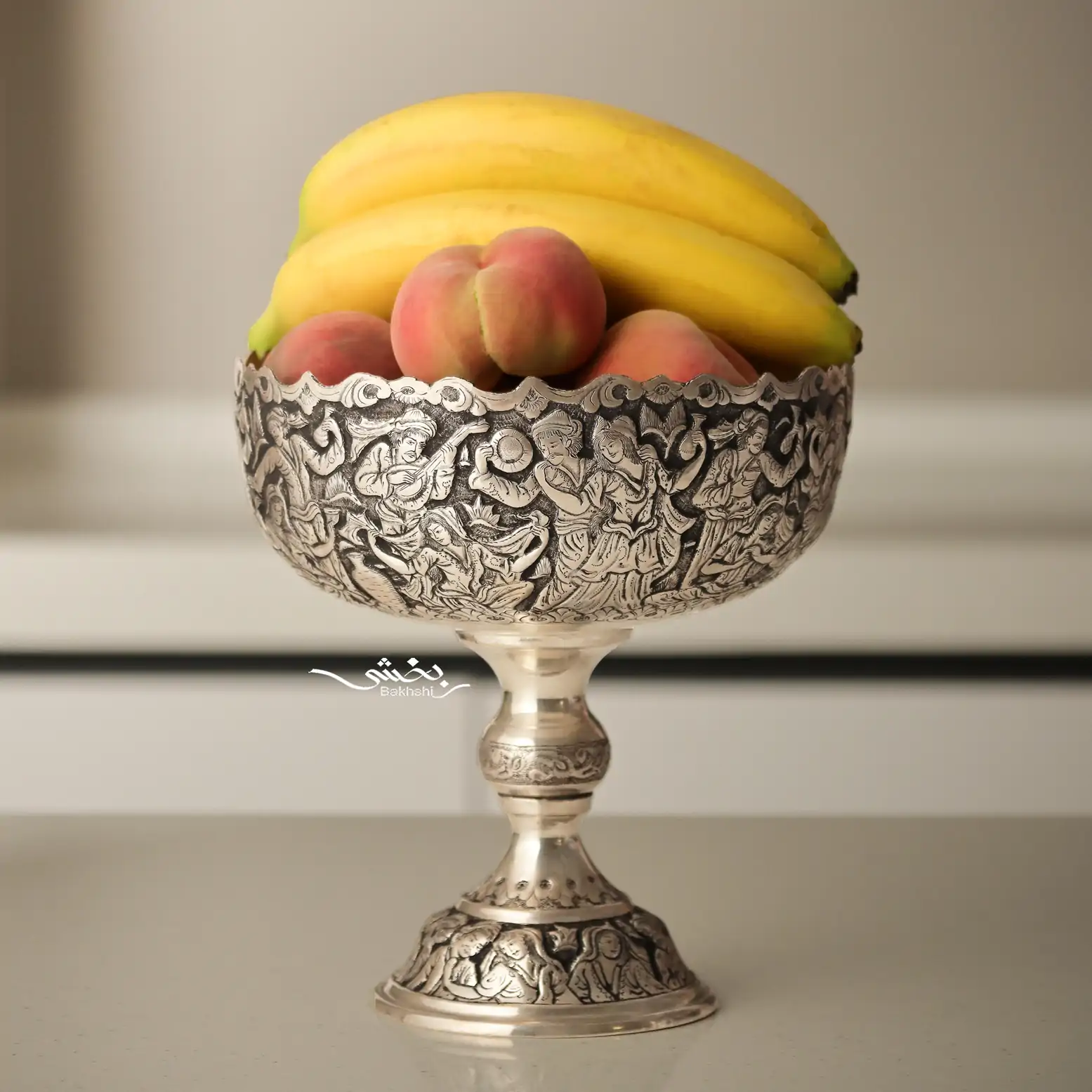کاسه نقره گرد پایه دار قلم مینیاتور