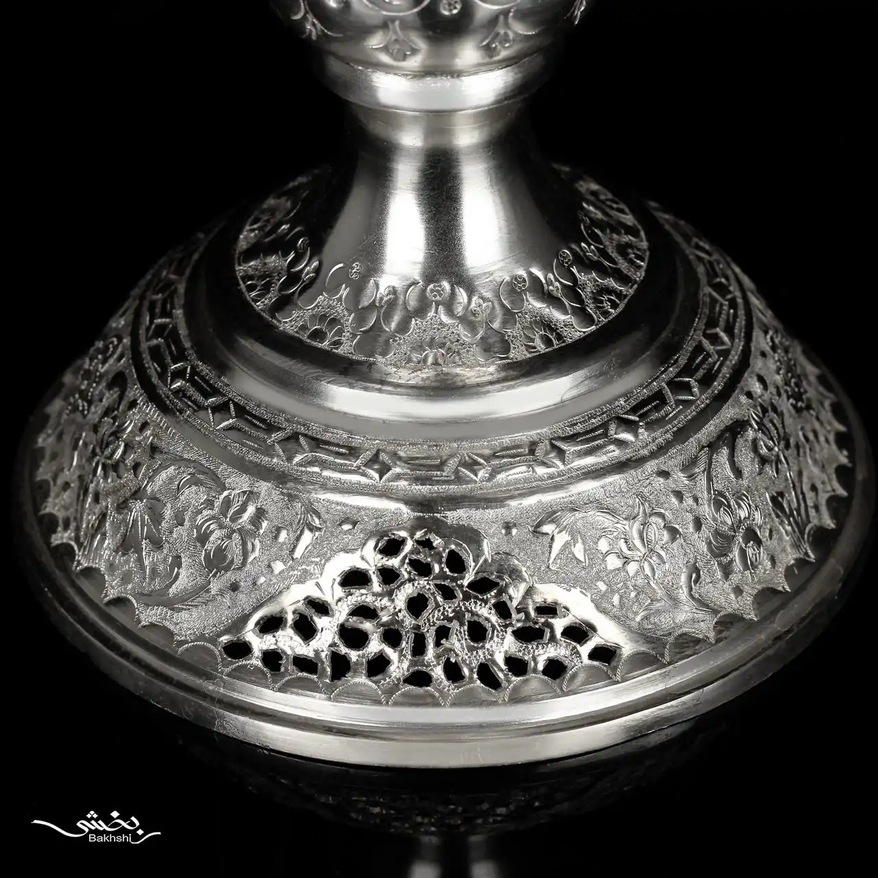 کاسه نقره گرد پایه دار قلم گل و مرغ