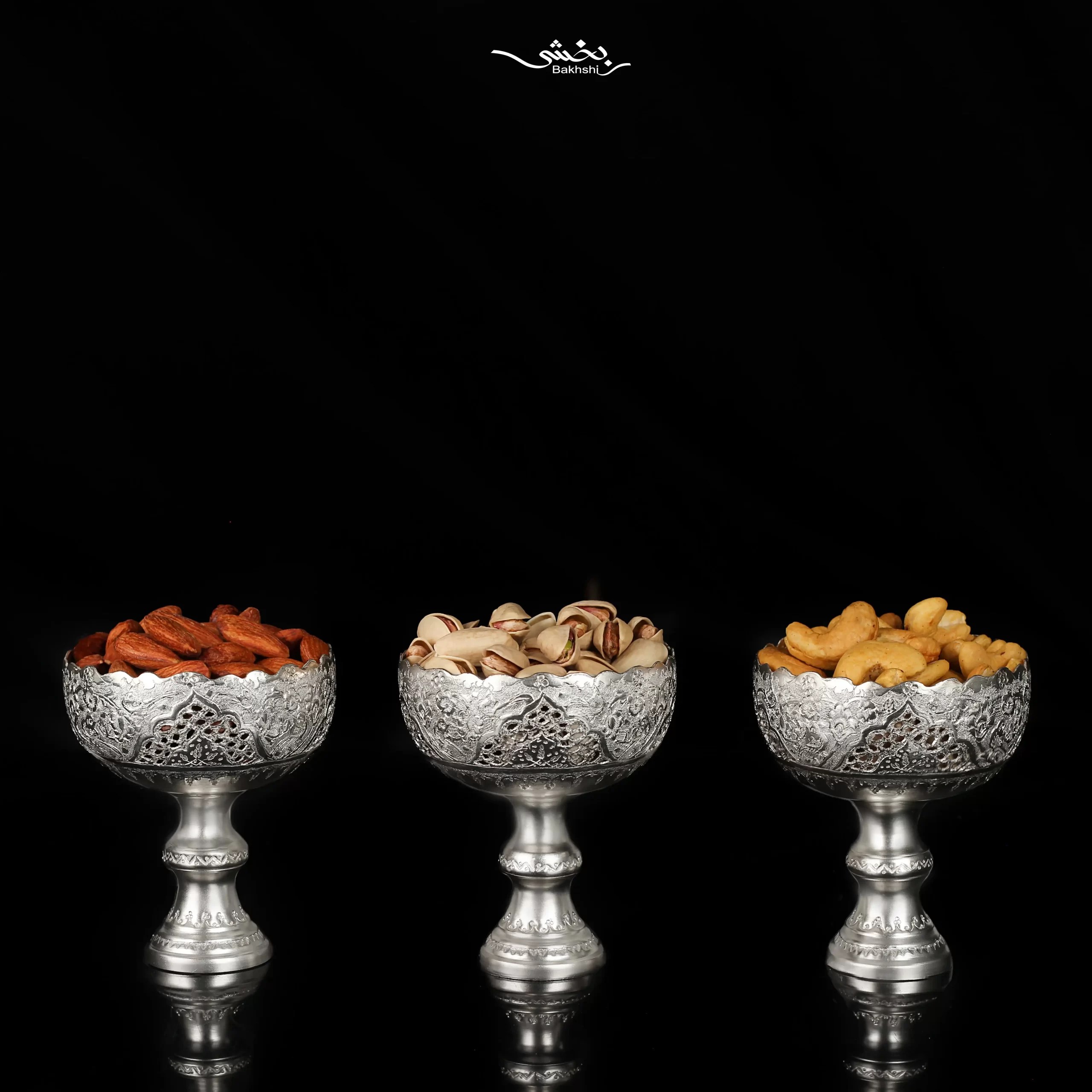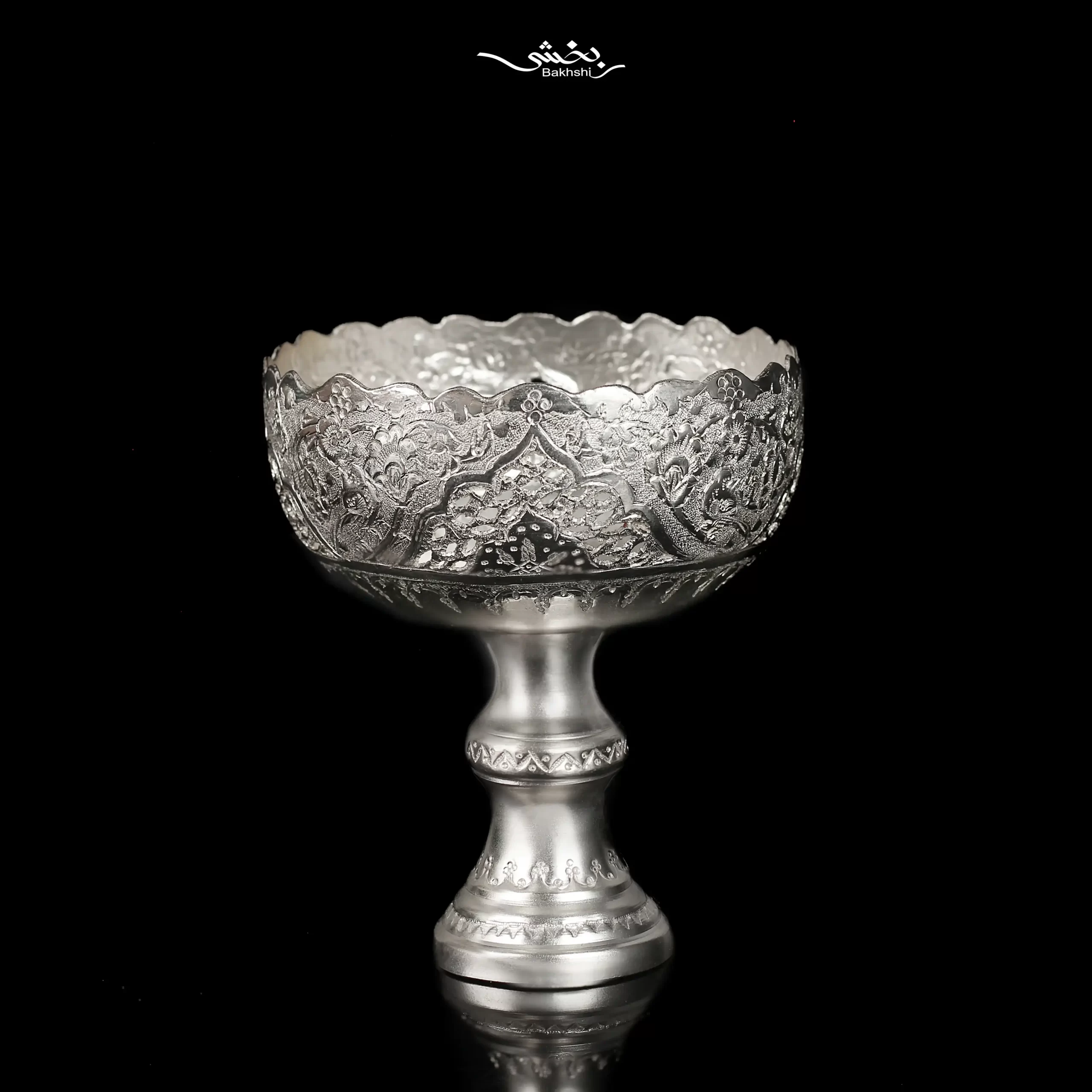 کاسه 6 عددی نقره پایه دار قلم گل و مرغ