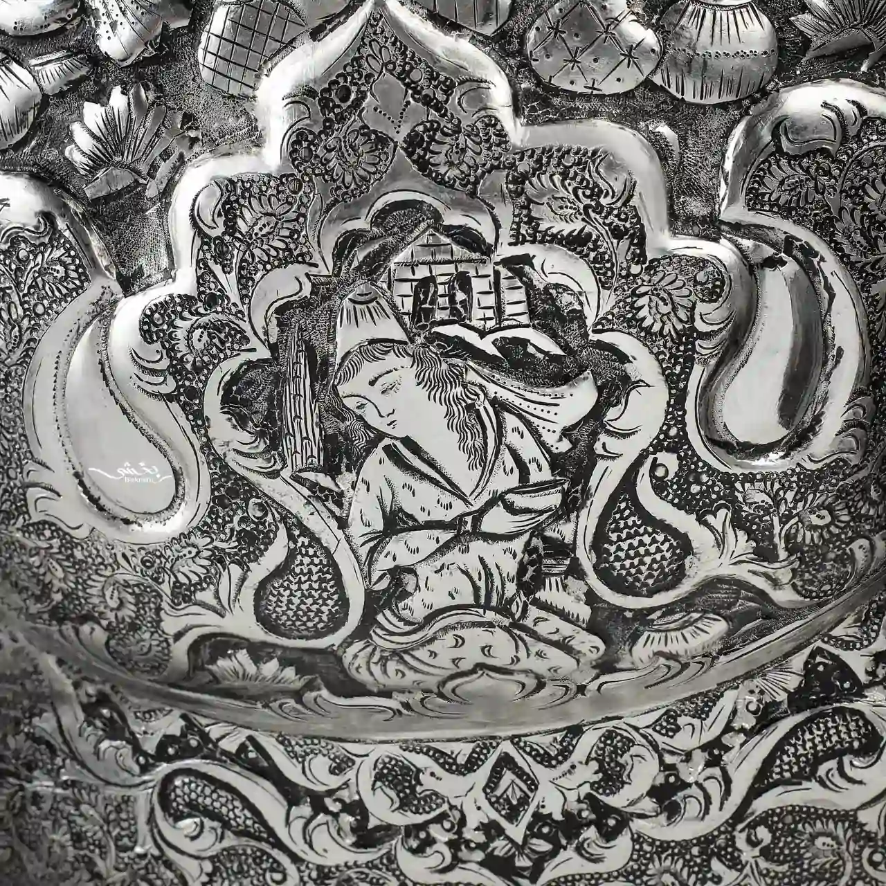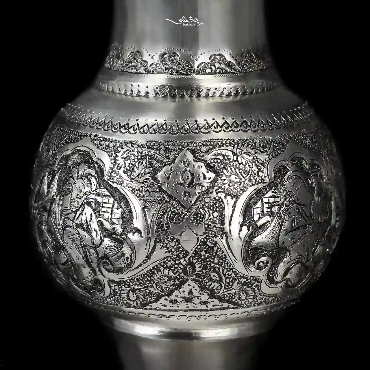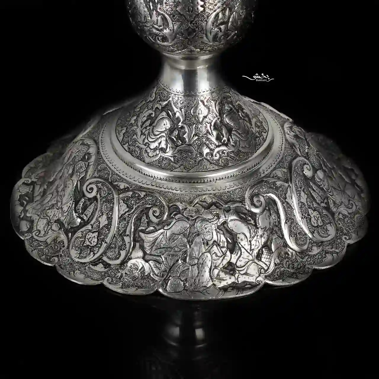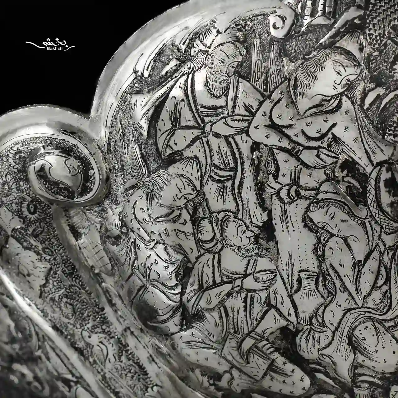 کشکول دسته‌دار نقره قلم مینیاتور – نقره بخشی